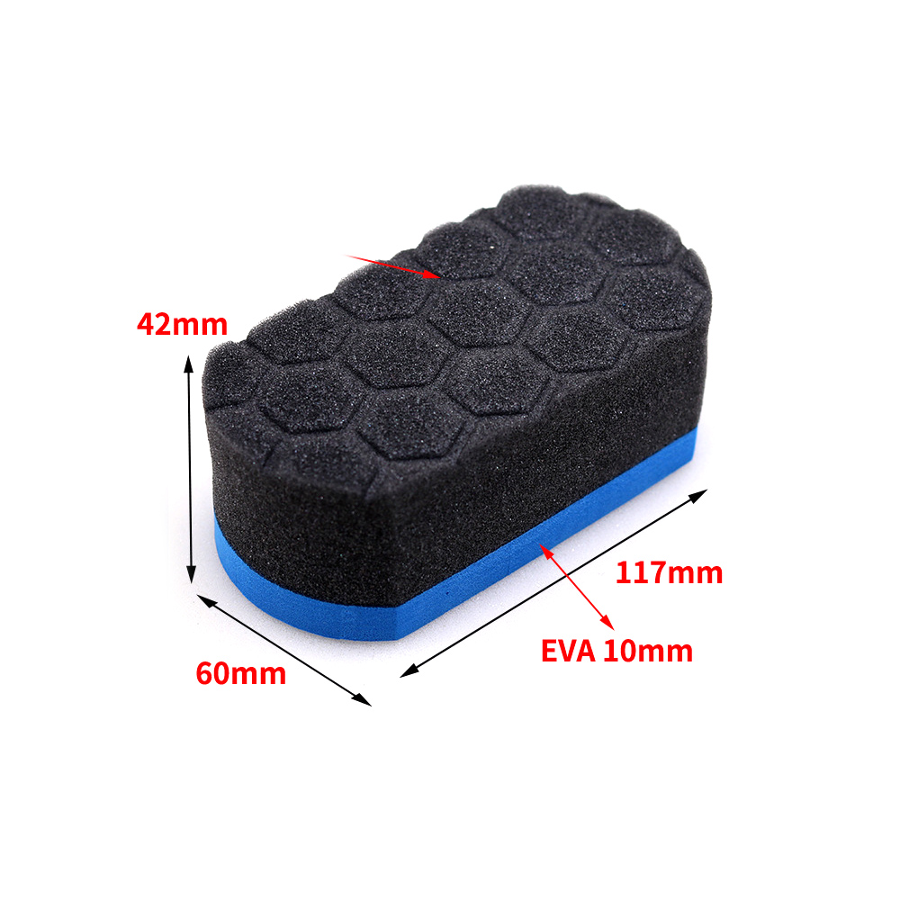 Az alsó szürke része egy lágy,de sűrű anyagú szivacs. Hatszög mintás a kialakítása, így az autóápolási szereket nagyon hatékonyan és egyenletesen lehet elosztani vele az adott területen.