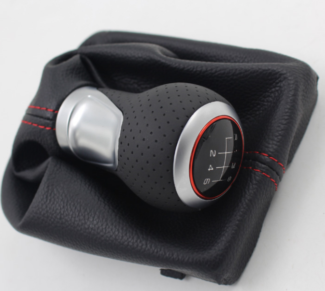 A váltógomb számlapja fényes,piros keretes S line designos. A bőr perforált (lukacsos) felületű.