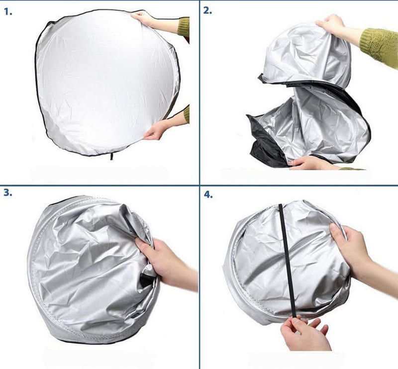 1. Helyezze a nyitott napellenzőt a szélvédő belső vagy külső felületére úgy, hogy a szélvédőt teljesen takarja.
