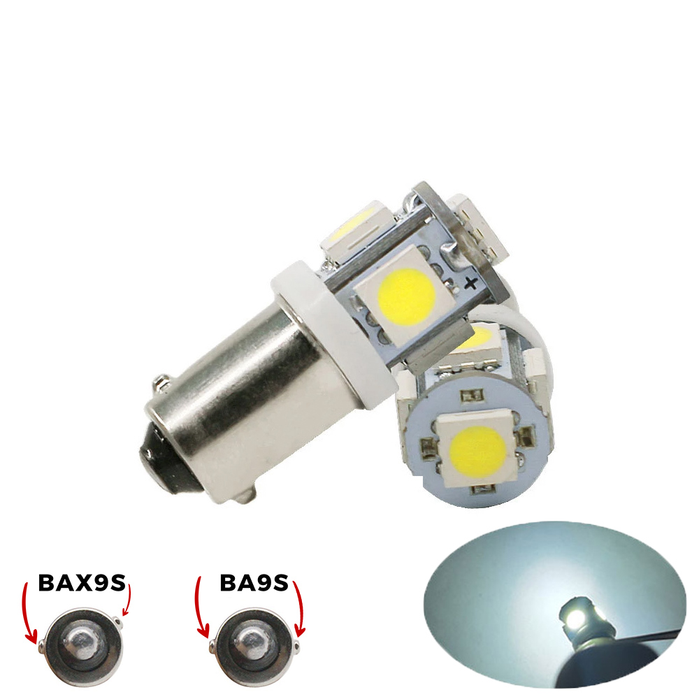 Ezen a BA9S izzón a led chippek két oldalt és elől lett telepítve, így kiválóan szórja a fényt. A kialakításának köszönhetően a ledek fényereje nagyobbnak hat, mivel jobban terti a fényét. Az izzó SMD ledekkel van felszerelve.