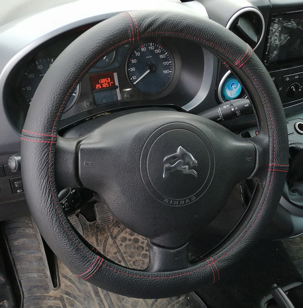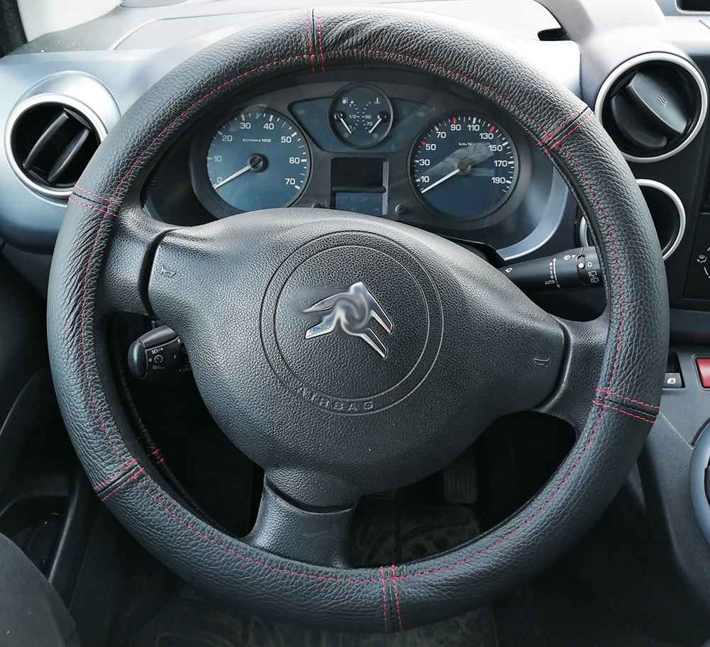 Valódi bőrből készült kormányvédő, amely kényelmes fogást biztosít a vezetés alatt.