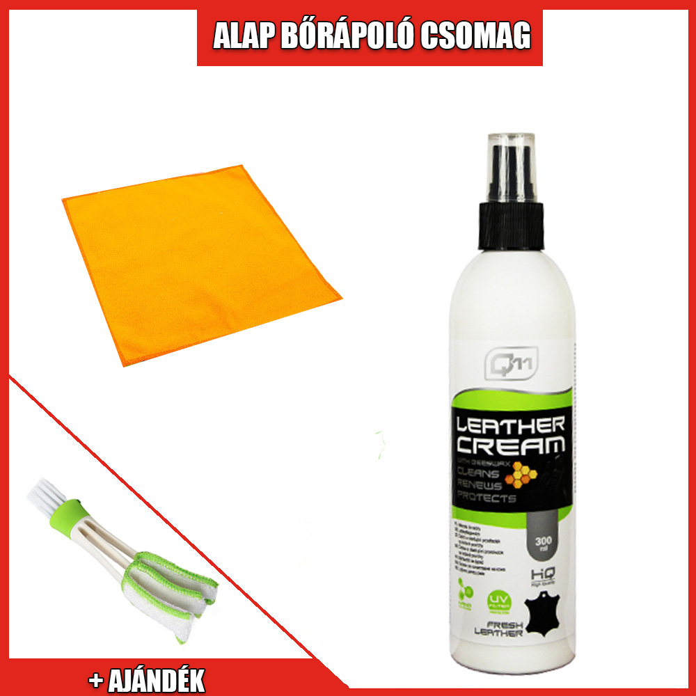 A csomag tartalmaz egy bőr tisztító és ápoló krémet, mikroszálas törlőkendőt és egy ajándék tisztító kefét.