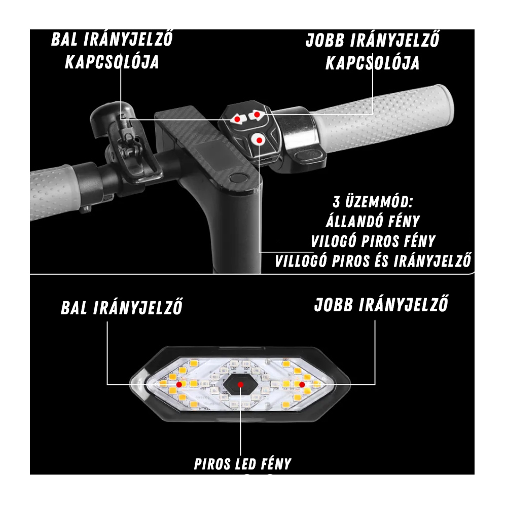 Öt világítási móddal rendelkezik, folyamatosan világító vagy villogó piros fényekkel, illetve jobb és bal oldali irányjelző fénnyel