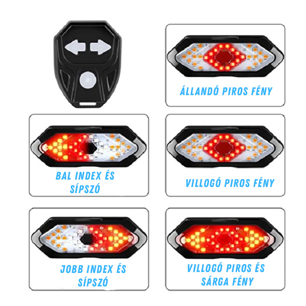 Öt világítási móddal rendelkezik, folyamatosan világító vagy villogó piros fényekkel, illetve jobb és bal oldali irányjelző fénnyel