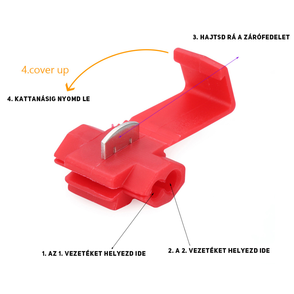 Maga a bekötés roppant egyszerű, a késes csatlakozókkal a lámpa vezetékeihez kell társitani.