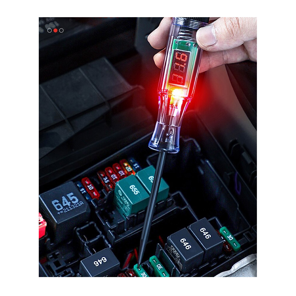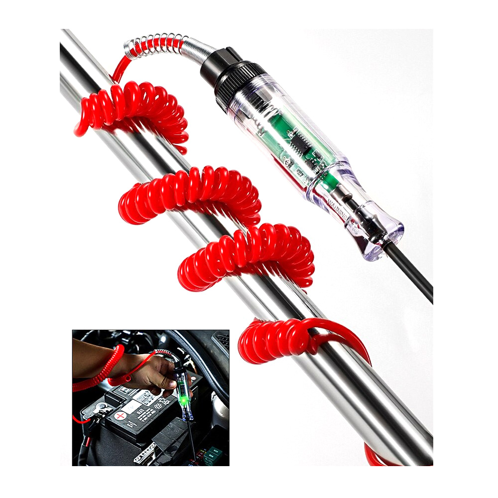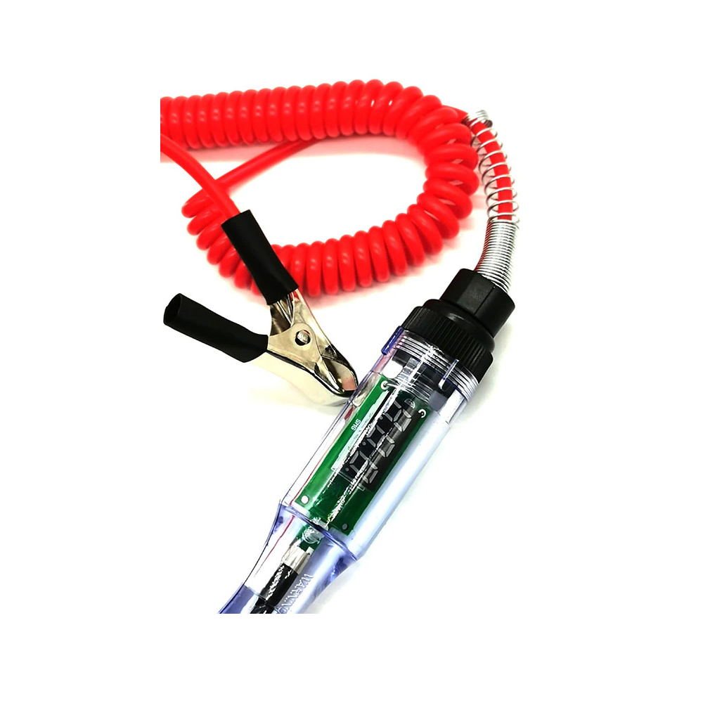 Ez a fázisceruza ideális az áramkörök, biztosítékok, kapcsolók és vezetékek ellenőrzésére autókon, pótkocsikon, csónakokon, motorkerékpárokon és más kisfeszültségű rendszereken. Földelje le az aligátorcsipeszt, ezt követően a fázisceruza már készen áll az áramkör teszteléséhez. Ha a jelzőfény világít, akkor feszültség alatt van az adott áramkör.