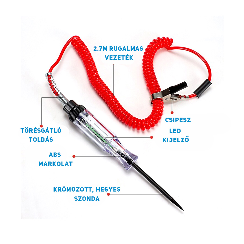 Az éles acélszonda könnyen át is tudja fúrja a vezetékszigetelést az áramkörök ellenőrzéséhez.