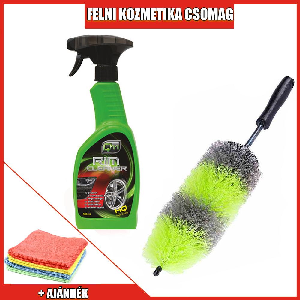 A gumiápoló csomagunk tartalmaz egy gumiápoló sprayt, egy profi felni tisztító kefét,és egy ajándék mikroszálas kendőt.