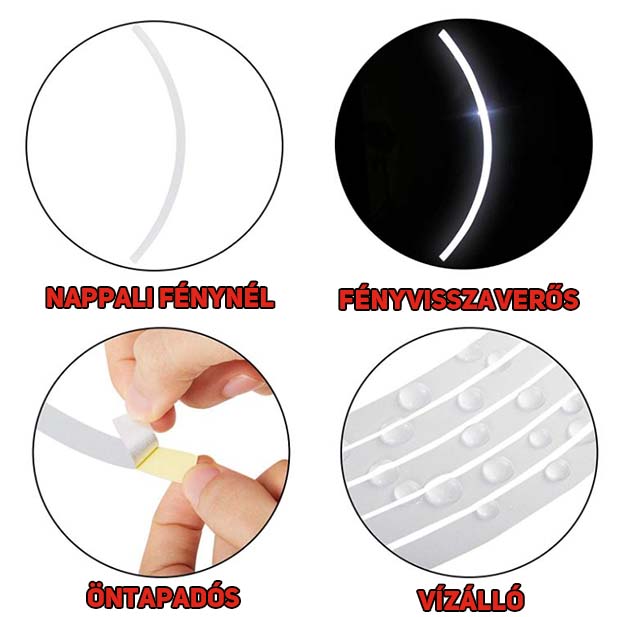 • Fontos, hogy a felnicsíkokat csak meleg időben, vagy fűtött helyen lehet felrakni. A ragasztós hátoldala hidegben nem fog tapadni.