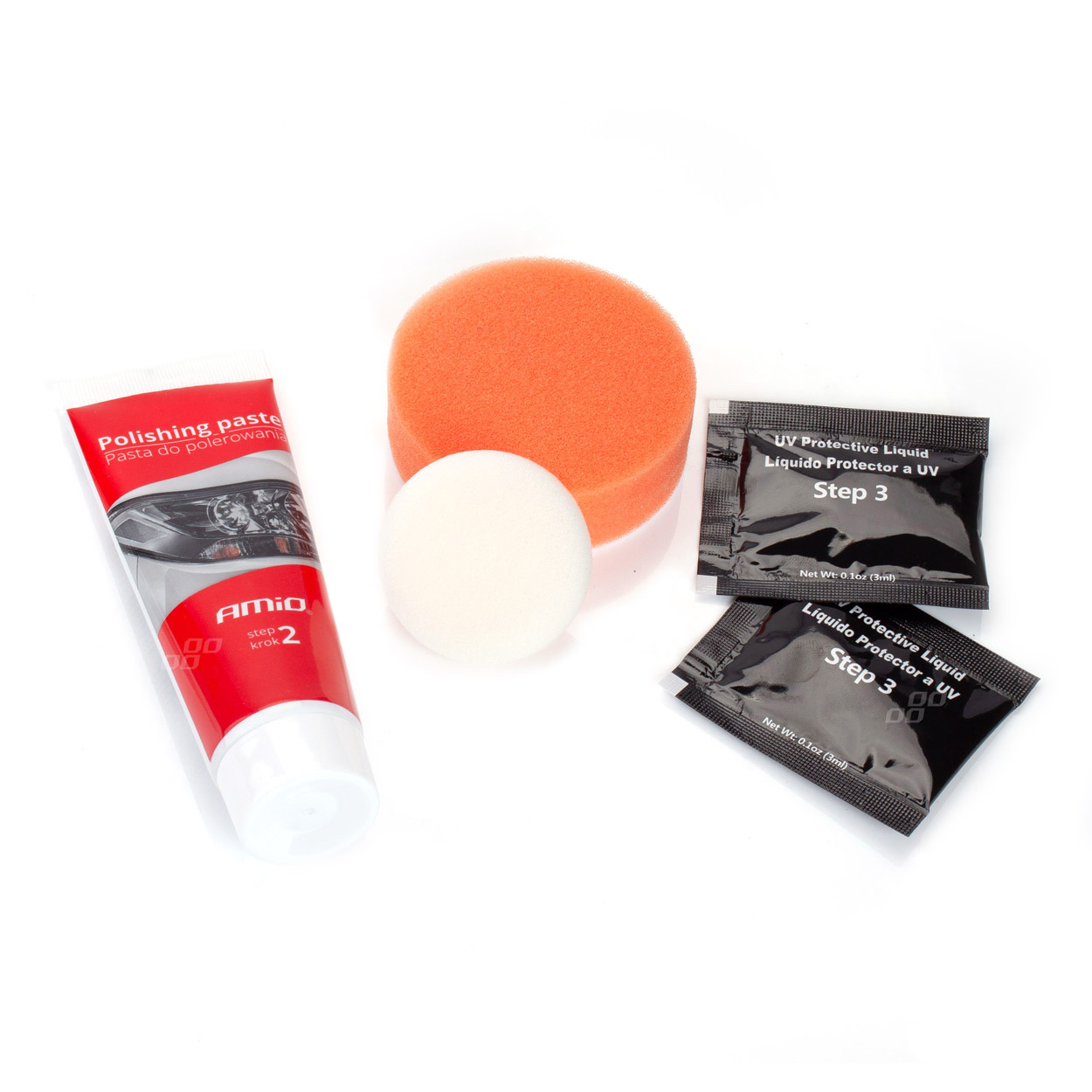 Az AMIO márkájú kimondottan fényszóró polirozásra alkalmas polírozó készlet, amellyel könnyen és profin felpolírozható a bemattult fényszóró