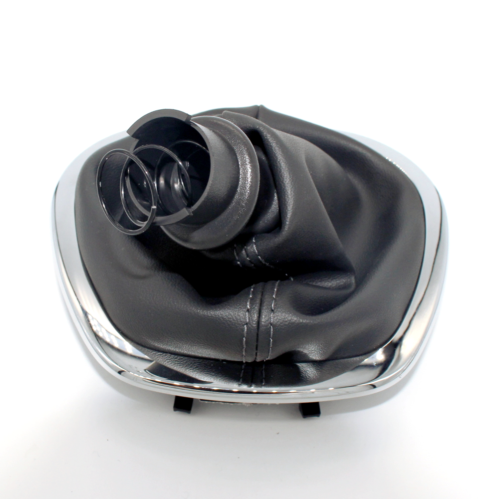 A váltószoknya fekete színű fekete varrással. Kompletten a beépítőkerettel össze van szerelve, így nagyon egyszerű a cseréje. A szoknya anyaga műbőr, mint a gyári váltószoknyáké. A külső króm keretet is tartalmazza a szett.