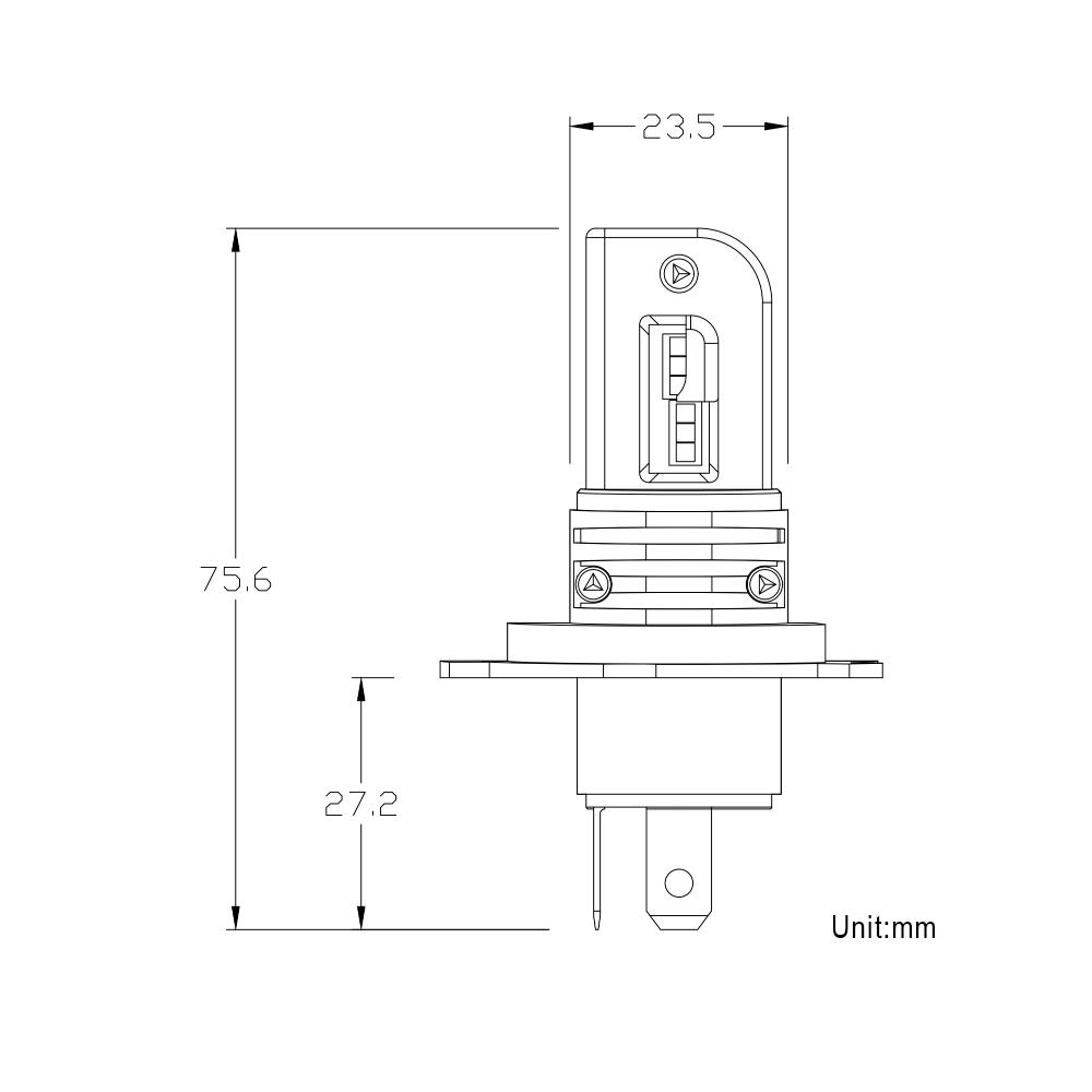 A mérete és a gyujtópont elhelyezkedése szinte miliméterre pontosan megegyezik a gyári H4izzóéval. Ennek köszönhetően az olyan lámpatestekbe is berakható, amelyekbe csak a gyári méret fér be. Ilyenek például a beforgatós és a különböző adapteres felfogatású lámpatestek.