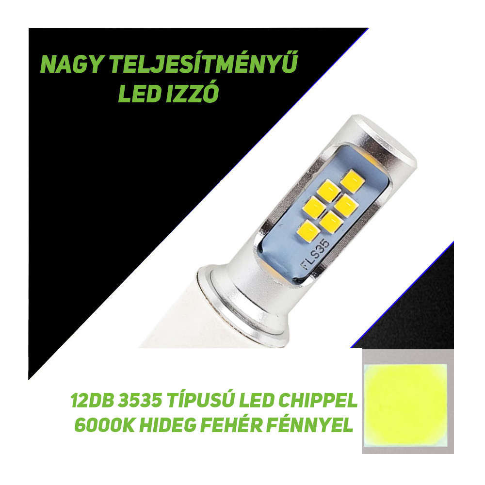 A led chippeknek köszönhetően a gyári izzókhoz képest sokkal erősebb hideg fehér fényt ad.