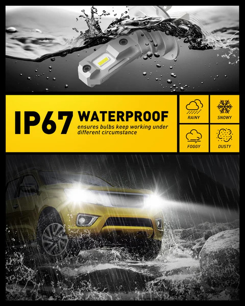 - Extrém fényerő: A fejlett LED chip technológiának köszönhetően akár 300%-kal nagyobb fényerőt nyújt a hagyományos halogén izzókhoz képest. Az 6500K hideg fehér fény éles, tiszta látóteret biztosít, így éjszaka is magabiztosan vezethet.