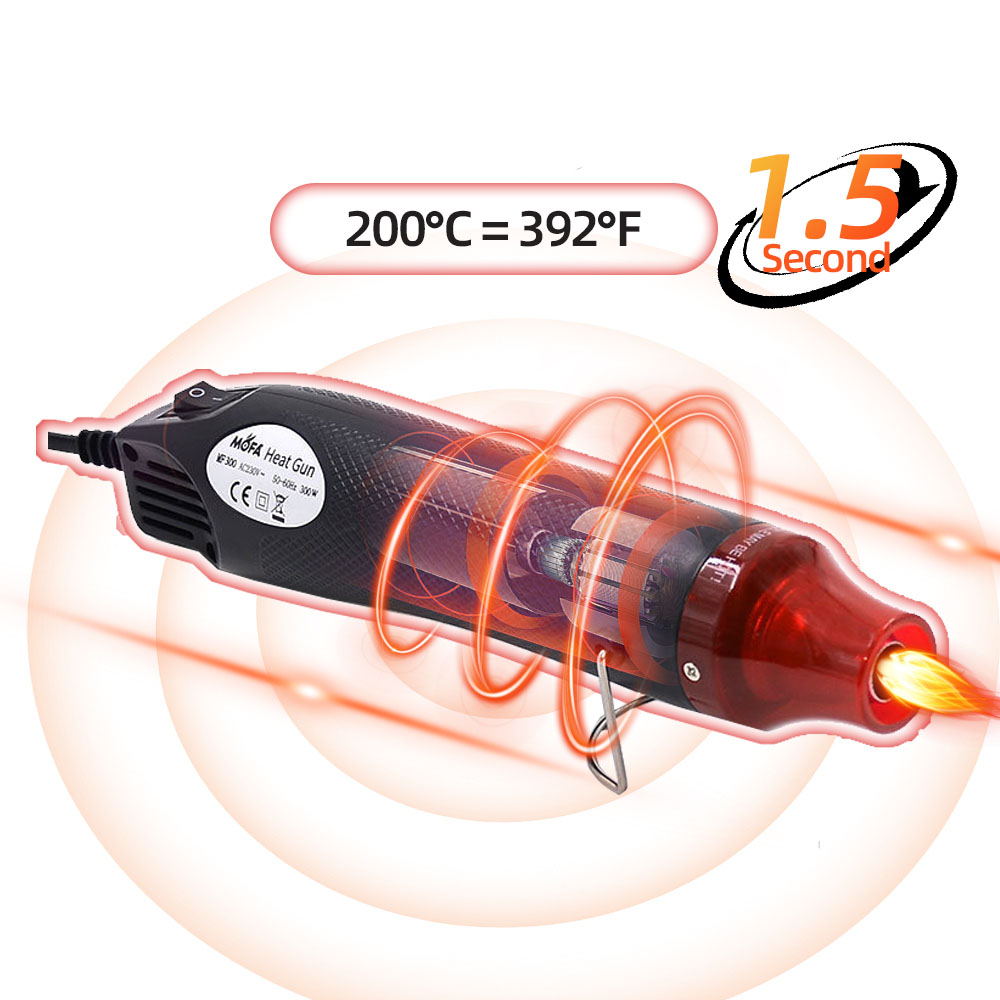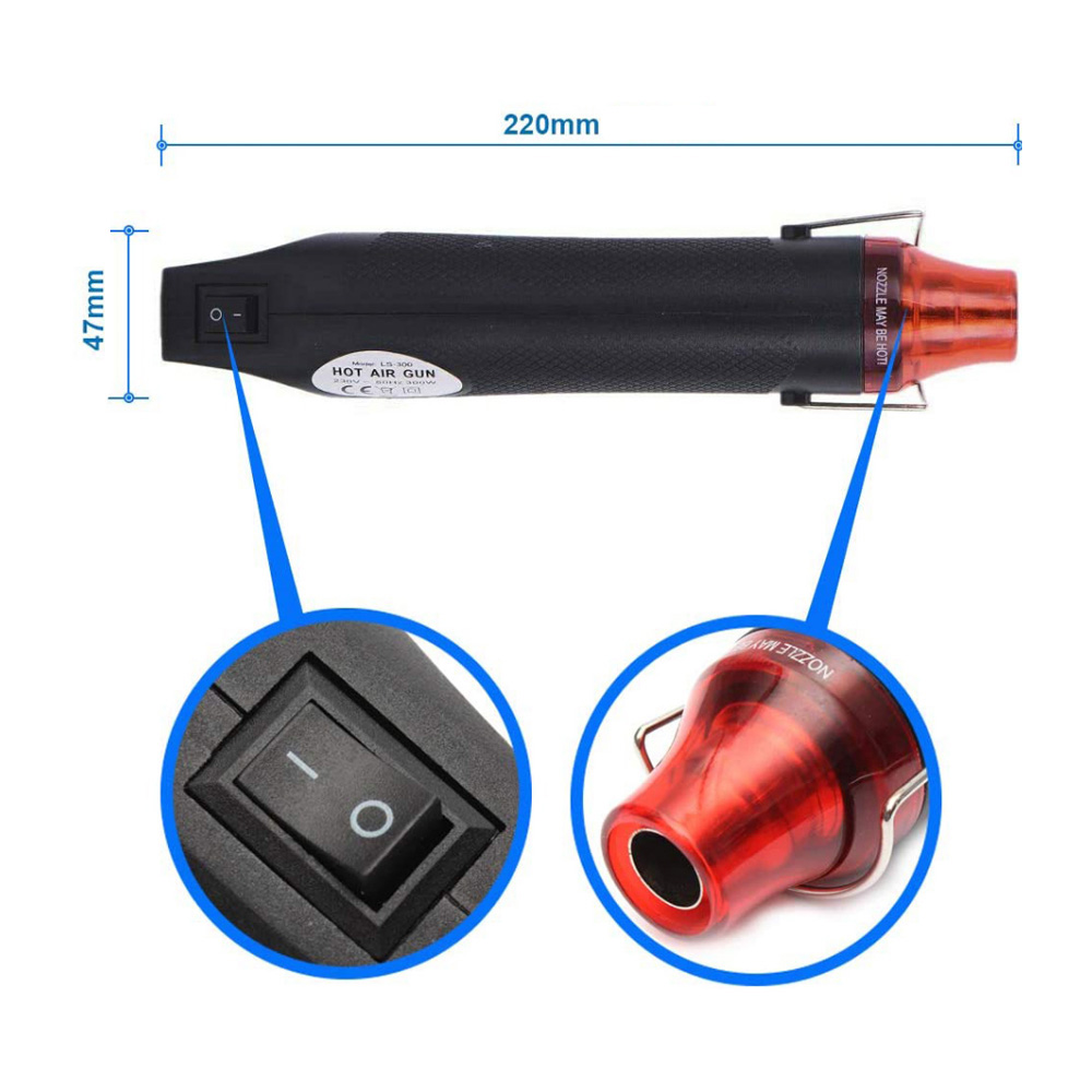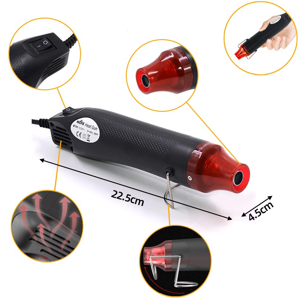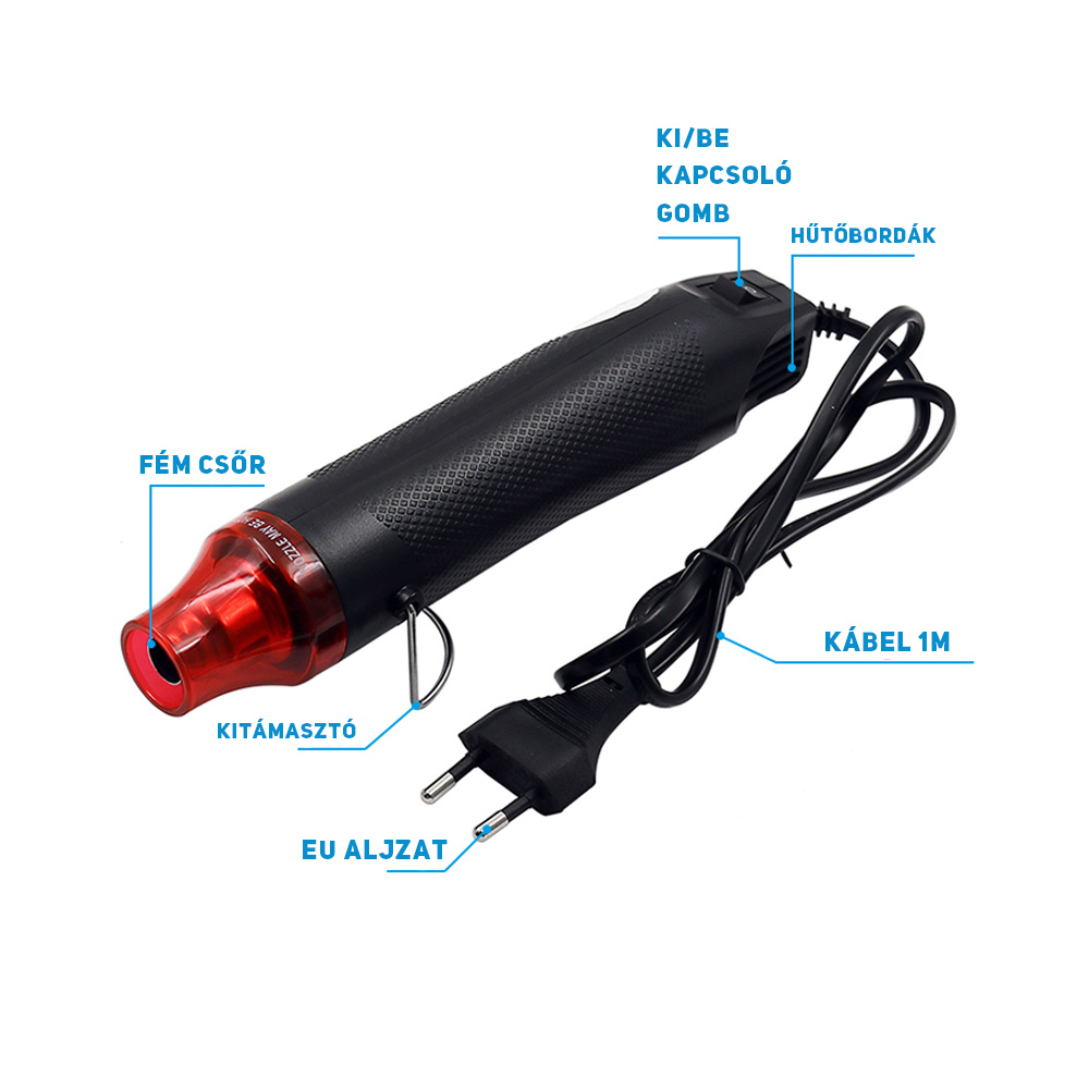 Hőlégfúvó Kényelmesen használható profi kialakítású kézi hőlégfúvó. Alkalmas lámpafóliákhoz, hőzsugrocsövekhez és egyéb bekötésekhez is. A hőmérséklet-szabályozó eszköz a forrólevegős pisztoly áramkörében van elhelyezve. Amikor a belső hőmérséklete egy bizonyos magasságba emelkedik , a hőmérséklet-szabályozó maga kapcsolja le az áramot, ami megvédi az áramkör biztonságos működését, és kiküszöböli a veszélyes helyzetek, például a magas hőmérsékletű olvadás és a tűz előfordulását. A hőlégfúvó teste strapabíró ABS-ből készült,a levegő kivezetés pedig rozsdamentes anyagból készült. A bal és a jobb oldalon van egy hűtőborda, amely csökkentheti a belső hőmérsékletet és meghosszabbíthatja az élettartamot. Nagyon könnyű használni. Csak tartson körülbelül 3-5 cm távolságot a melegítendő elemtől, és melegítse körülbelül 45 fokos szögben, hogy elkerülje a sérülést 300 wattos, így pillanatok alatt eléri a megfelelő üzemi hőmérsékletet. A hőlégfúvó mérete: 24x5cm