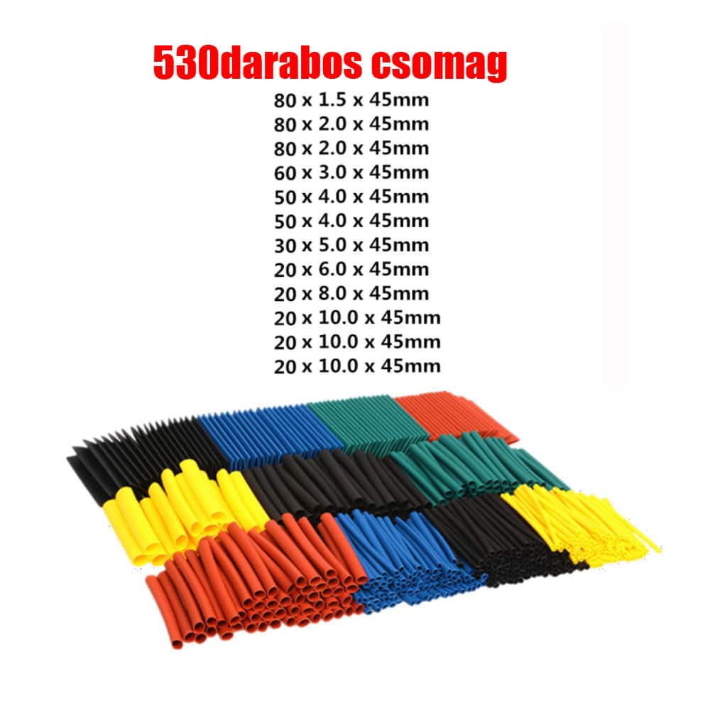530 darabos hőzsugorcső készlet, különböző méretben. Ekkora szettel mindig kéznél lesz a megfelelő méretű zsugorcső. A vezetékek biztonságos szigeteléséhez mindig a pontos méret választása szükséges, másnkülönben nem feszül rá megfelelően a zsugorcső.