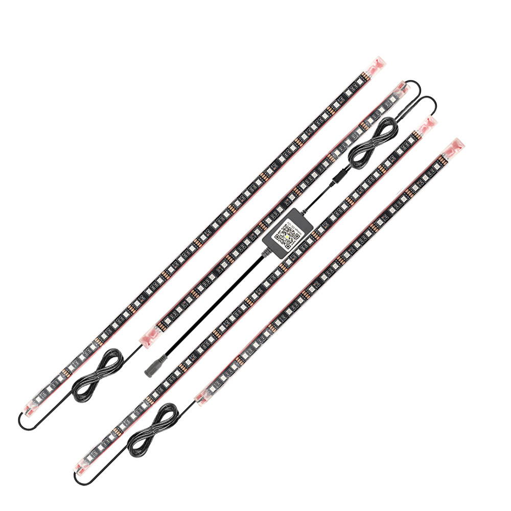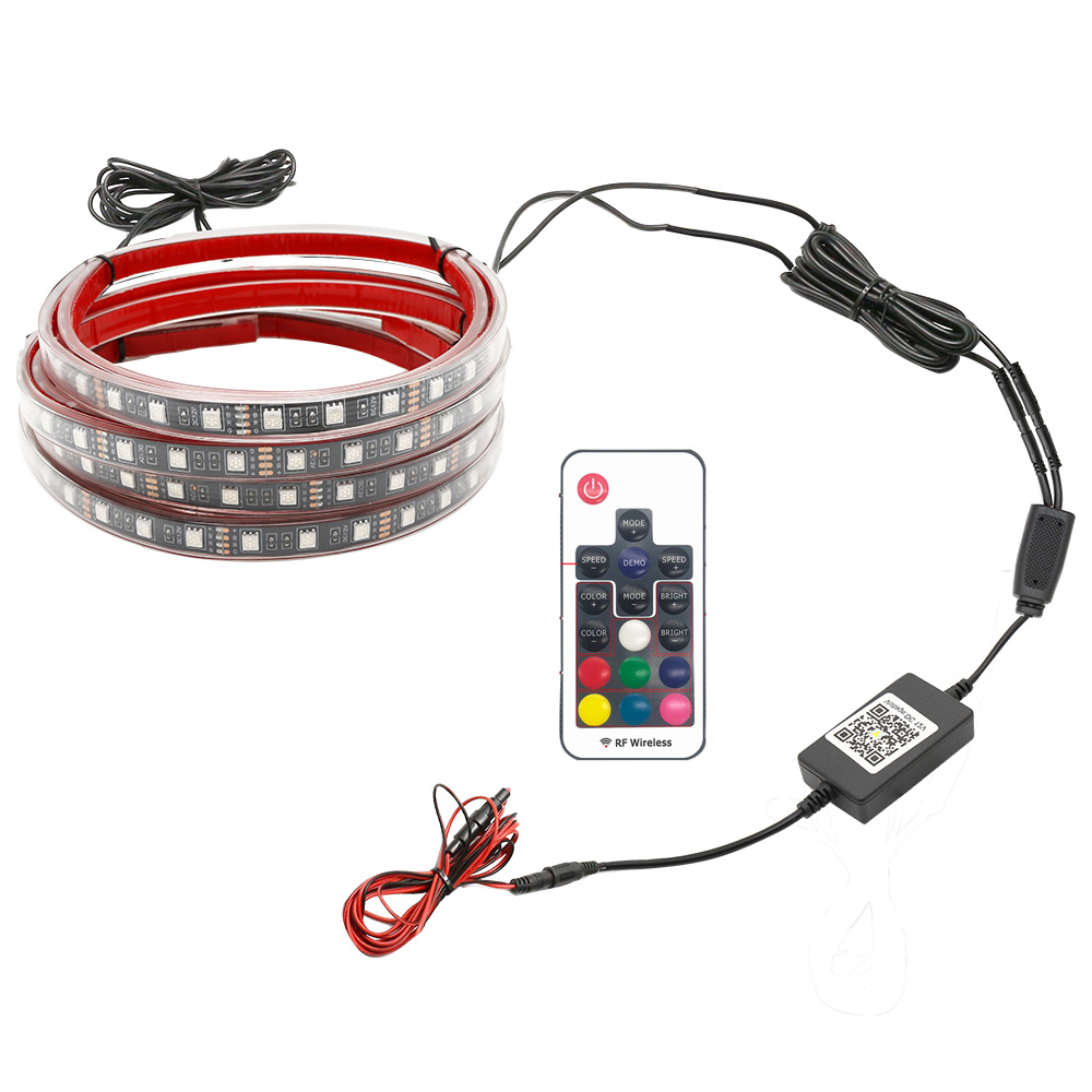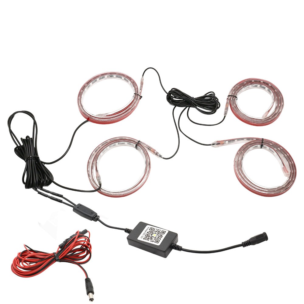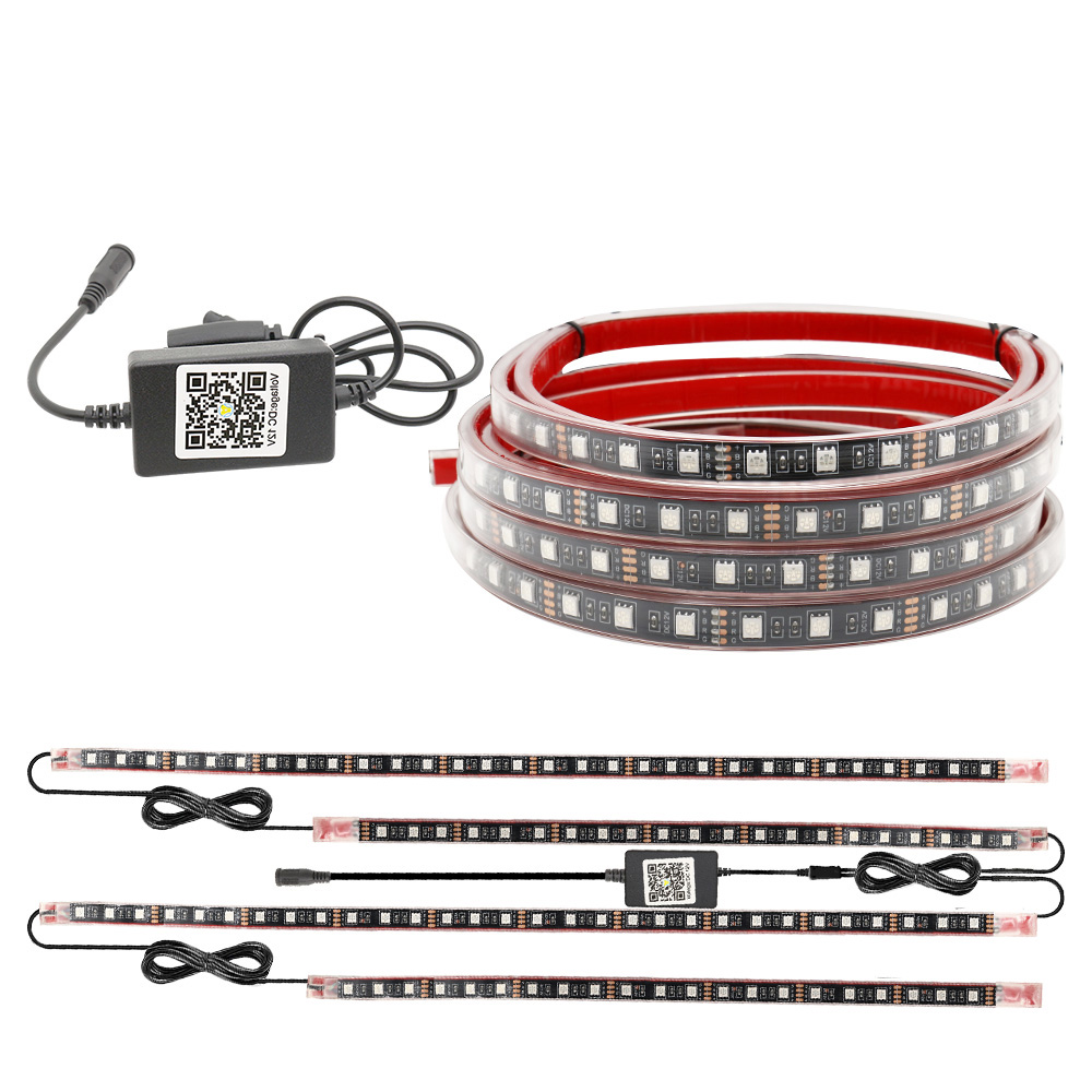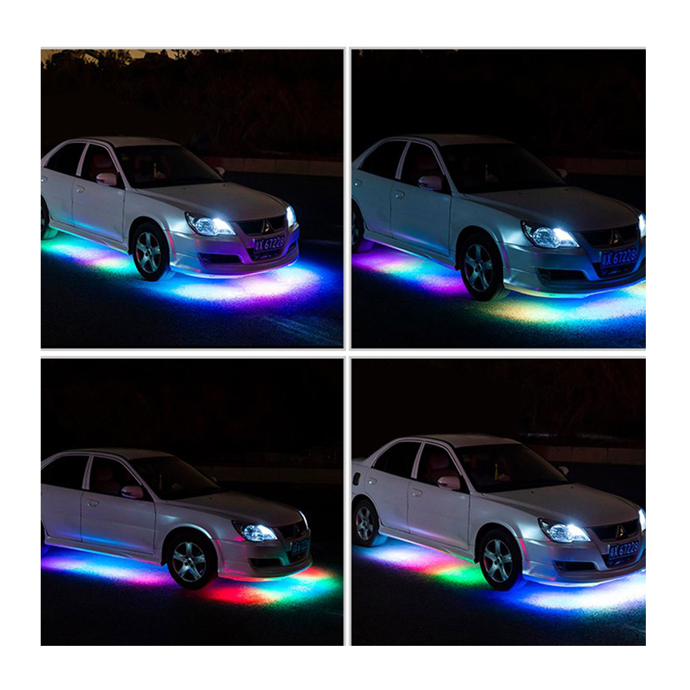 A szett tartalmaz két darab 1.2 méter hosszú, és két darab 0.9 méter hosszú ledszalagot. Ezek már gyárilag egybe vannak kötve. Az autó teljes aljára elegendő, így előre-hátra és két oldalra is fel lehet szerelni a ledcsíkot.