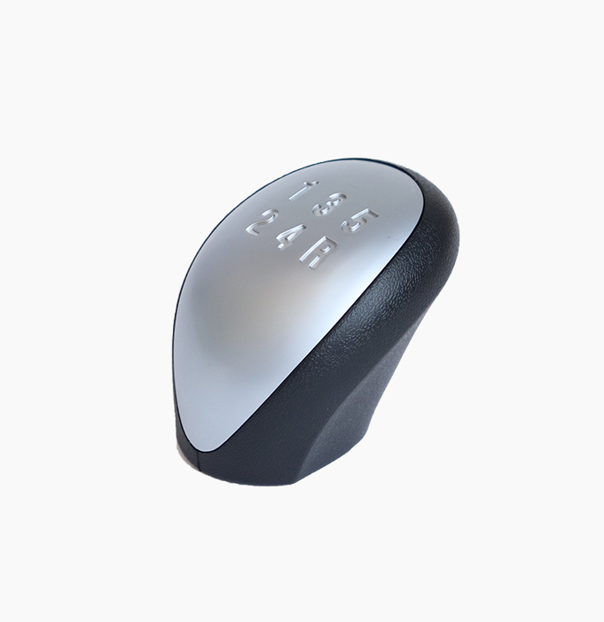 A váltógomb számlapja ezüst színű, az oldala a gyári váltógombhoz hasonlóan erezett műanyag