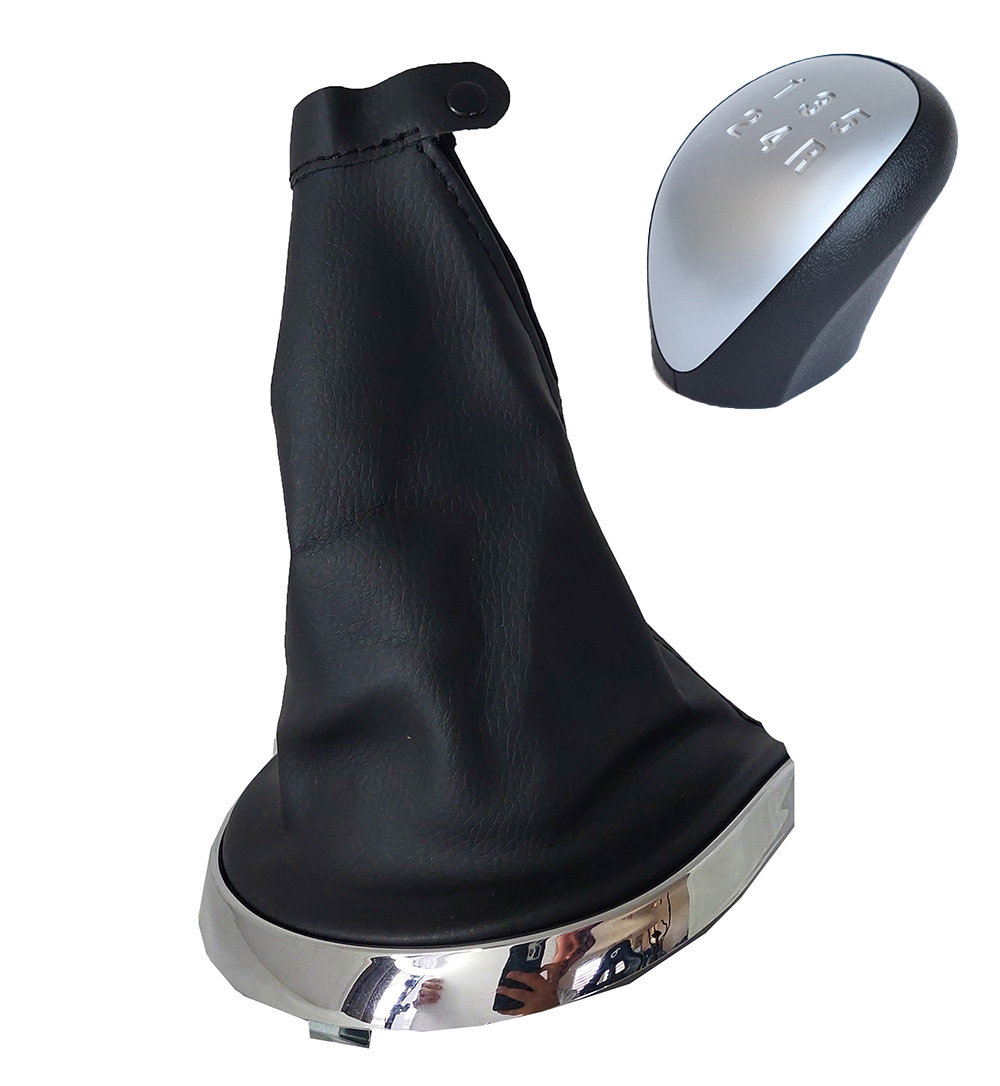 A váltószoknya fekete színű fekete varrással. Kompletten a beépítőkerettel össze van szerelve, így nagyon egyszerű a cseréje. A szoknya anyaga  műbőr, mint a gyári váltószoknyáké. A váltógomb 5 sebességes, ezüst számlappal.