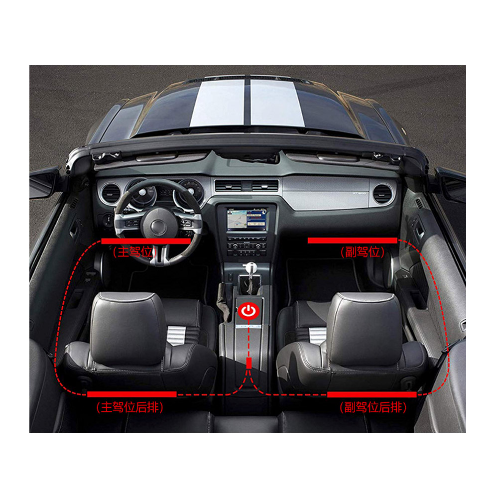 A kábelezése úgy van kialakítva, hogy a hátsó ülések alá is belehessen tenni a ledeket így egységes fényt ad az autó belterébe.