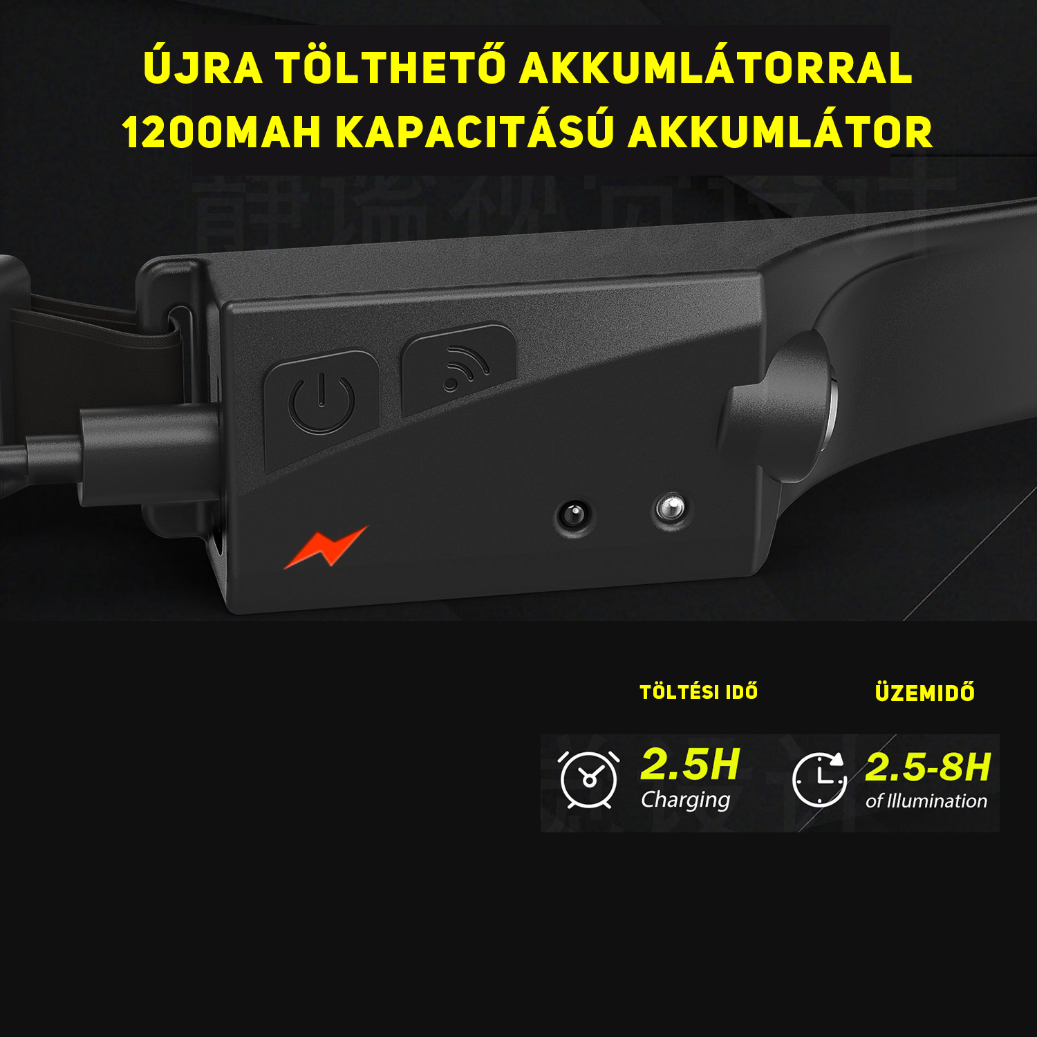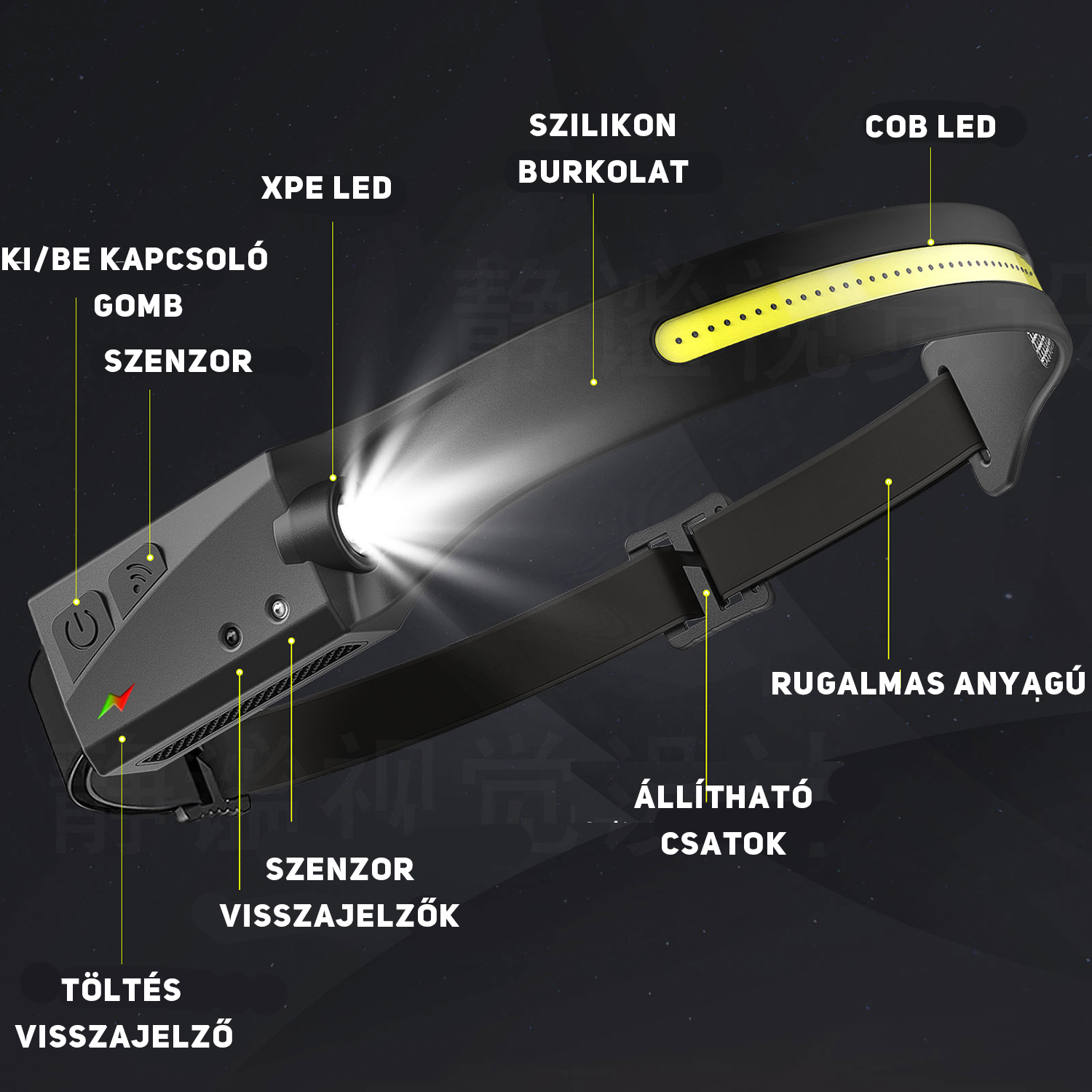A lámpatest tartókonzolon megtalálható egy mozgásérzékelő szenzor, így egyetlen kézmozdulattal lehet ki/bekapcsolni a fejlámpát.