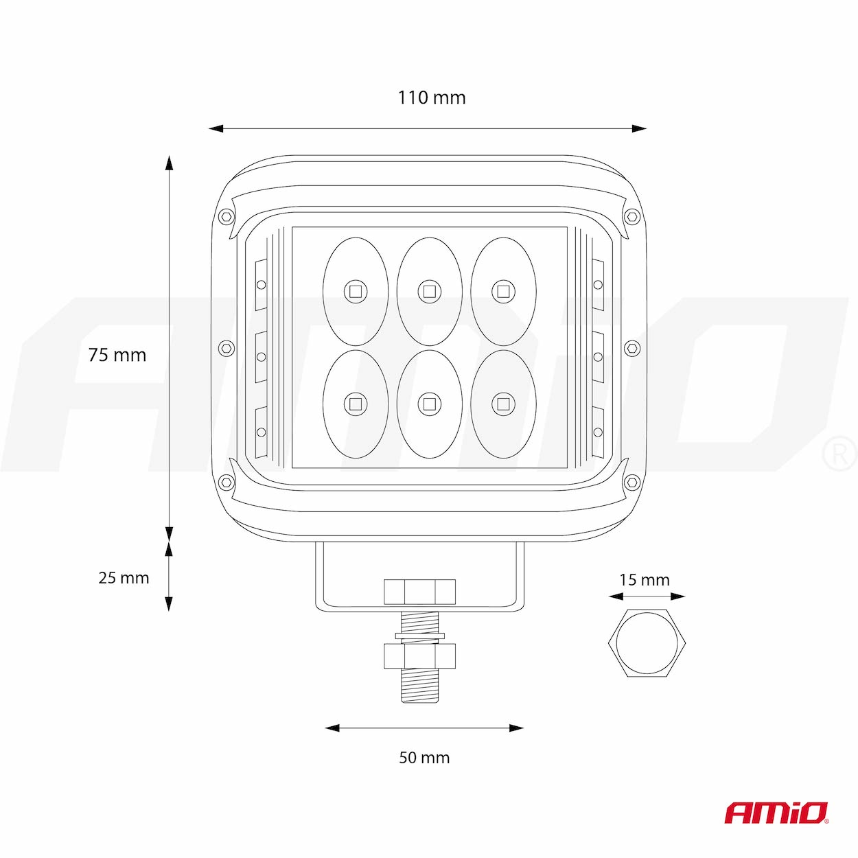A munkalámpa 12 darab led chippett tartalmaz. 3-3 darab oldalt és 6 darab a középső területen került telepítésre.