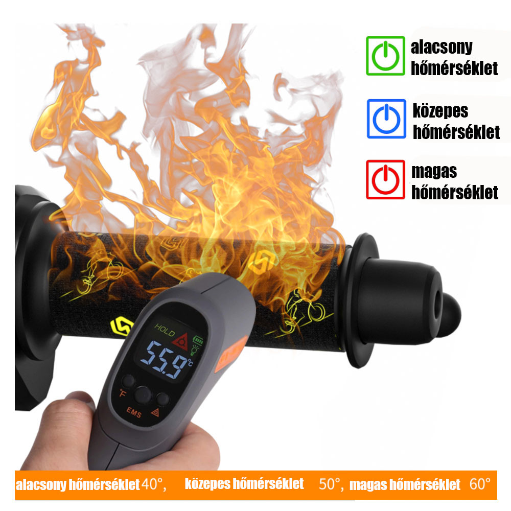 A bekapcsoló gomb fokozatú, alacsony, közepes és magas hőmérsékletre lehet állítani. A hőmérséklet eszerint 40C 50C illetve 60C fok. Ezzel már nagyobb hidegben is kellemes meleg lesz a markolat.