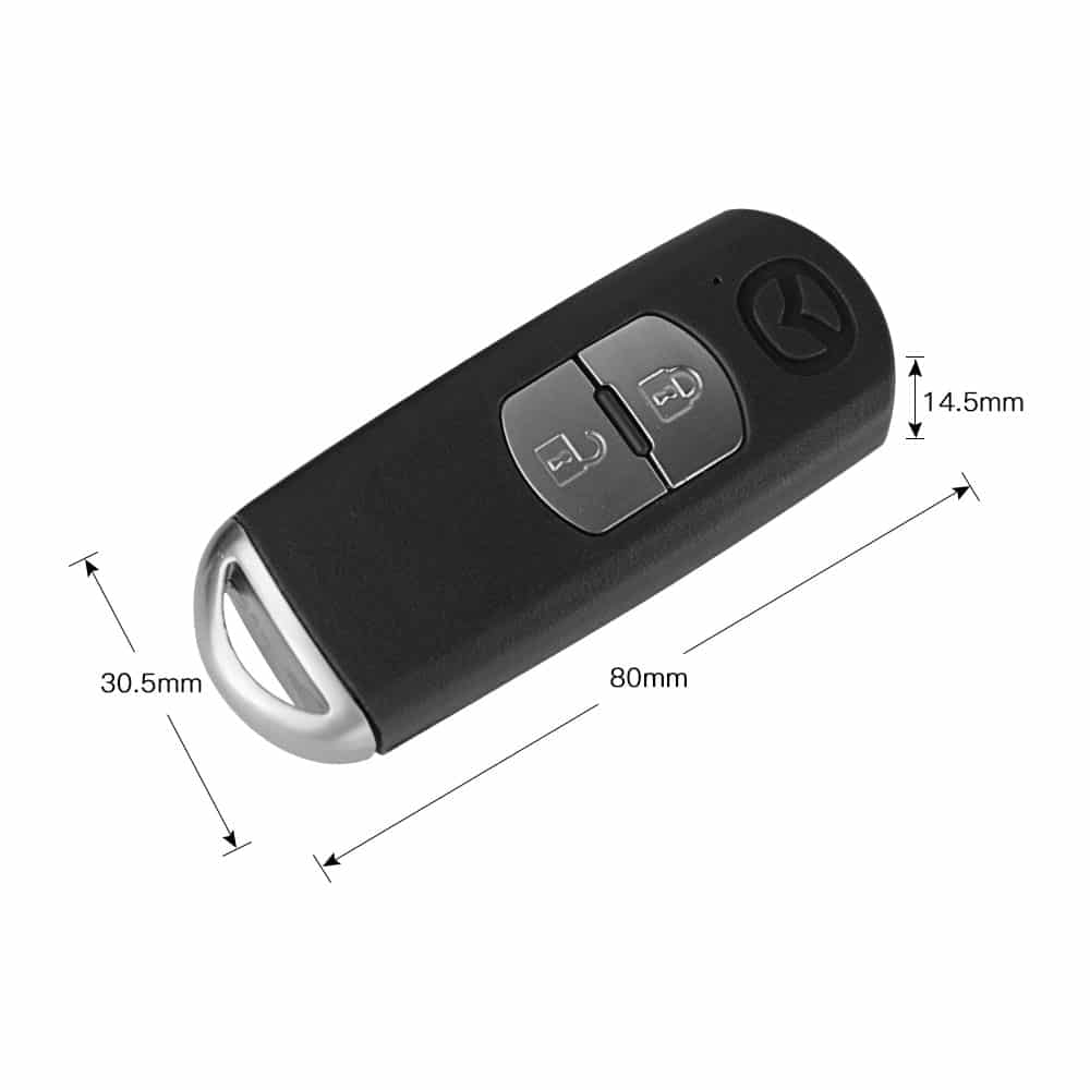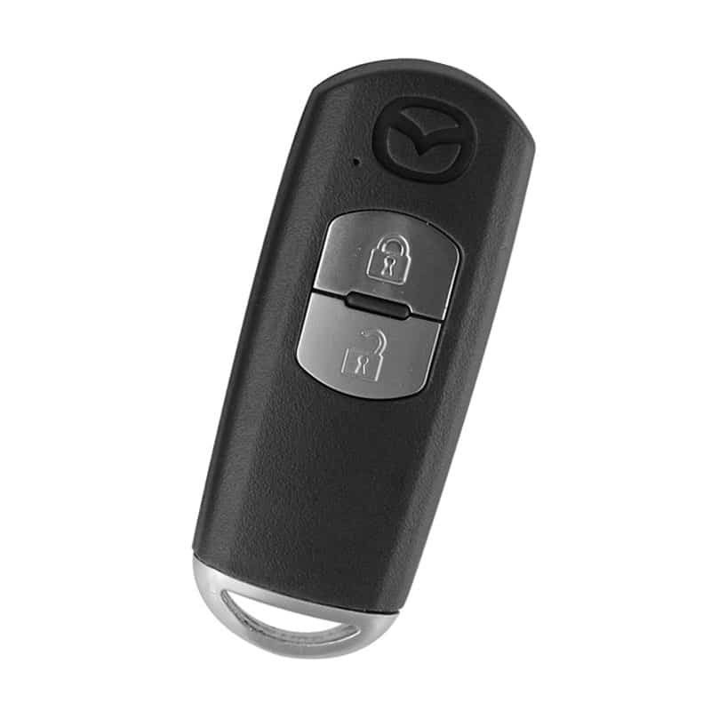 A Mazda kulcs a gyárival megegyező kialakítású, kettő nyomógombos. Nyitó és záró gomb található meg a kulcsházon.