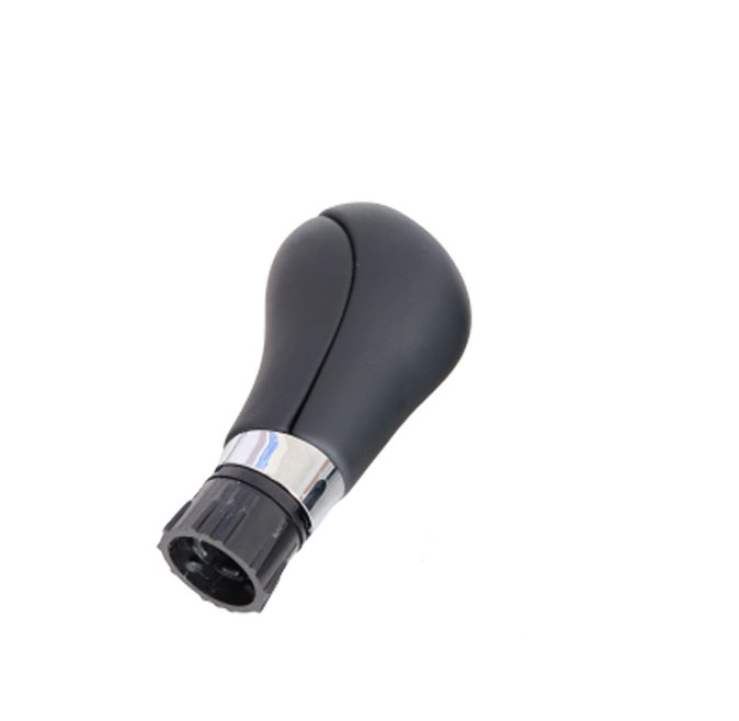 A váltógomb számlapja emblémás, a váltógomb teste pedig bőrözött, fekete színben.