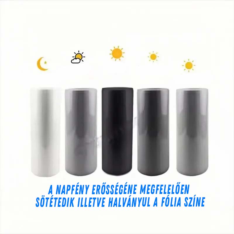 A fotokromatikus lámpafólia egy innovatív megoldás, amely automatikusan alkalmazkodik a fényviszonyokhoz: napfényben elsötétedik, árnyékban vagy éjszaka pedig visszavilágosodik.