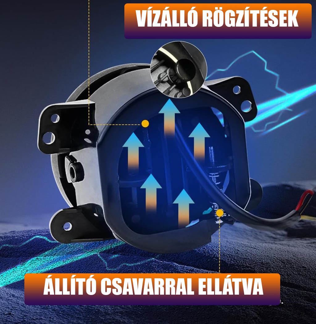 Méret: 90 mm-es ködlámpák, ami a közepes méretű lámpák kategóriájába tartozik.