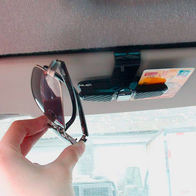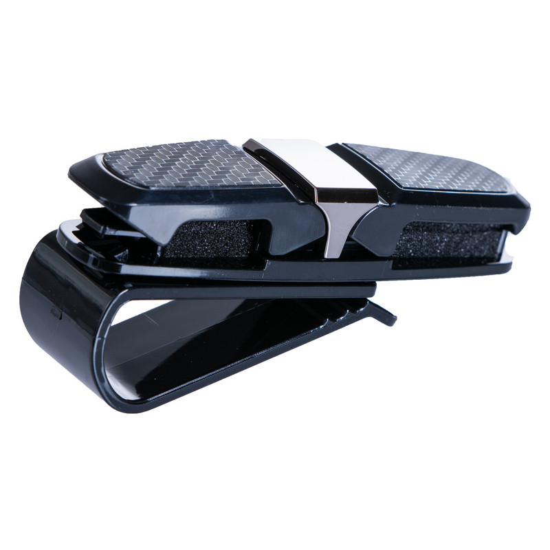 A csipeszes szemüvegtartóval kényelmesen és biztonságosan elhelyezhető a szemüveg. A napellenzőre lehet felcsúsztatni a tartót, és a napszemüveget a szárainál fogva tartja meg az eszköz.