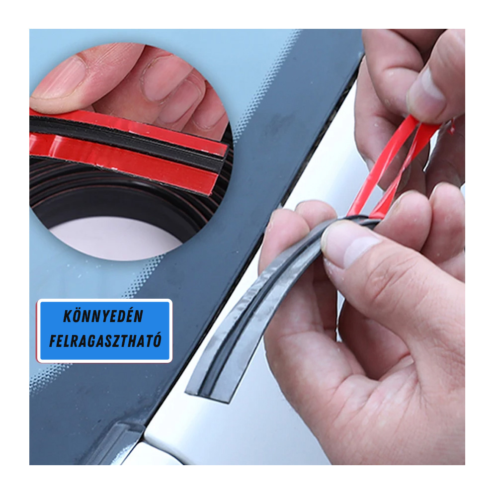 A védőgumi szett felhelyezhető a szélvédő és oldalüvegek pereméhez, illetve az esőtálcához is. Csökkenti a járda és a szélzaj bejutását az autóba, javítja a vezetési kényelmet, és elkerüli a por és az eső beszivárgását.