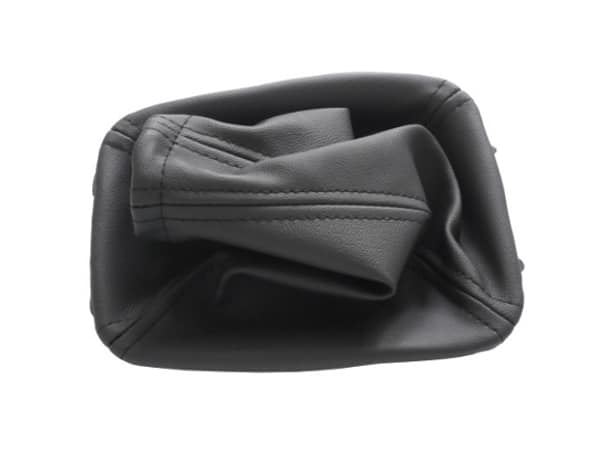 A váltószoknya és a kézifékszoknya fekete színű fekete varrással. Kompletten a beépítőkerettel össze van szerelve, így nagyon egyszerű a cseréje. A szoknya anyaga  műbőr, mint a gyári váltószoknyáké.