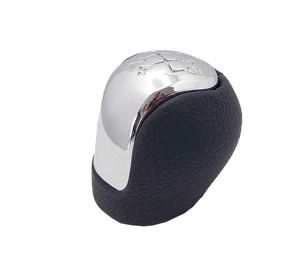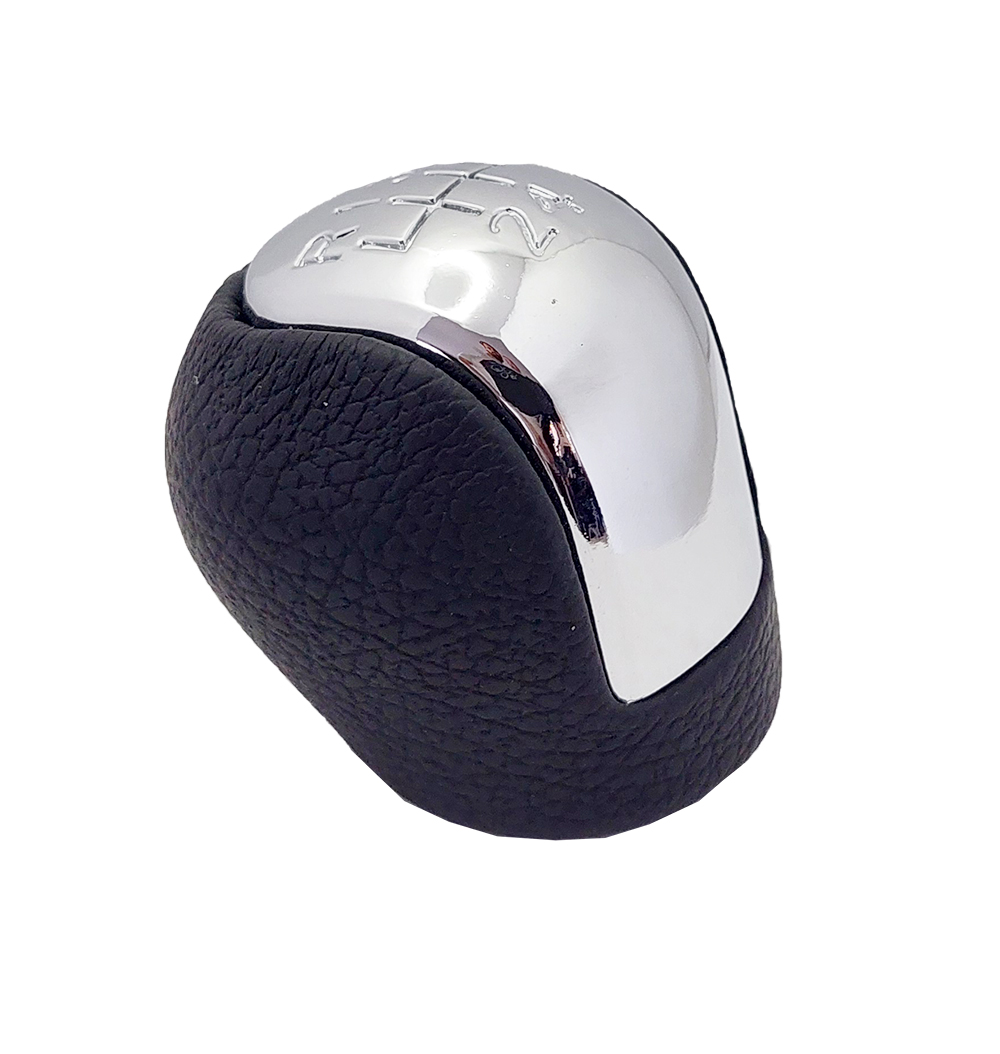 A váltógomb számlapja fényes krómozott felületű, a váltógomb teste fekete bőrözött kialakítású.