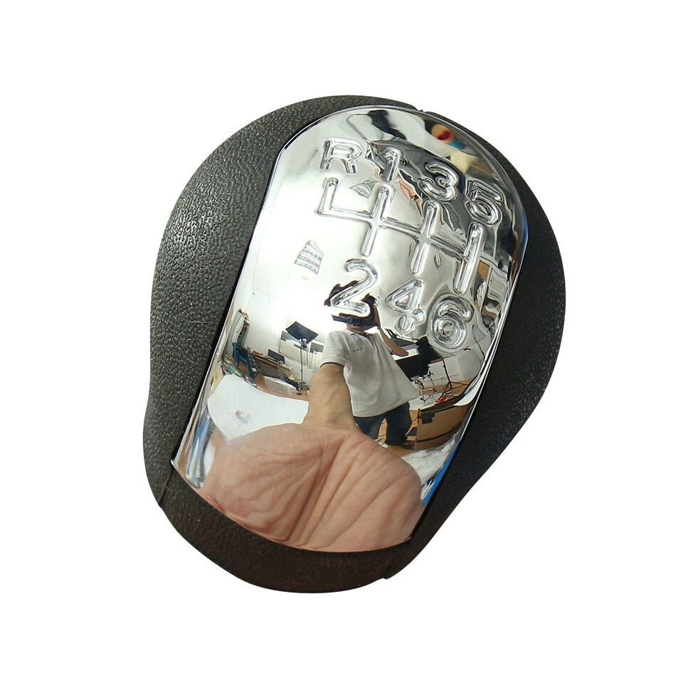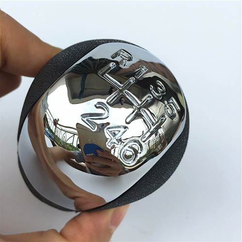 A váltógomb számlapja fényes krómozott felületű, a váltógomb teste fekete és a gyárihoz hasonlóan erezett mintázatú.