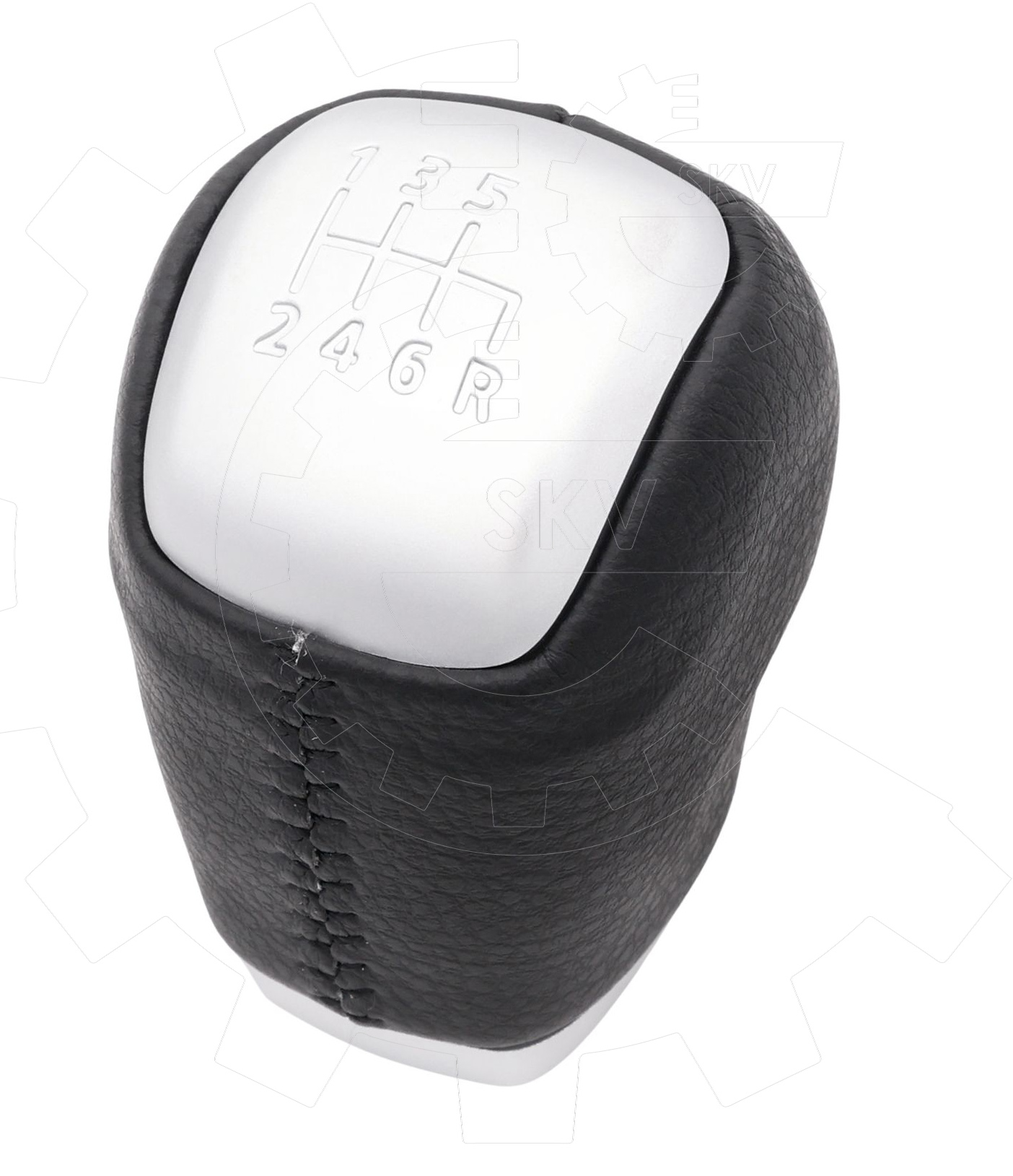 A váltógomb hat sebességes, fekete bőrözéssel és ezüst színű kiegészítőkkel.