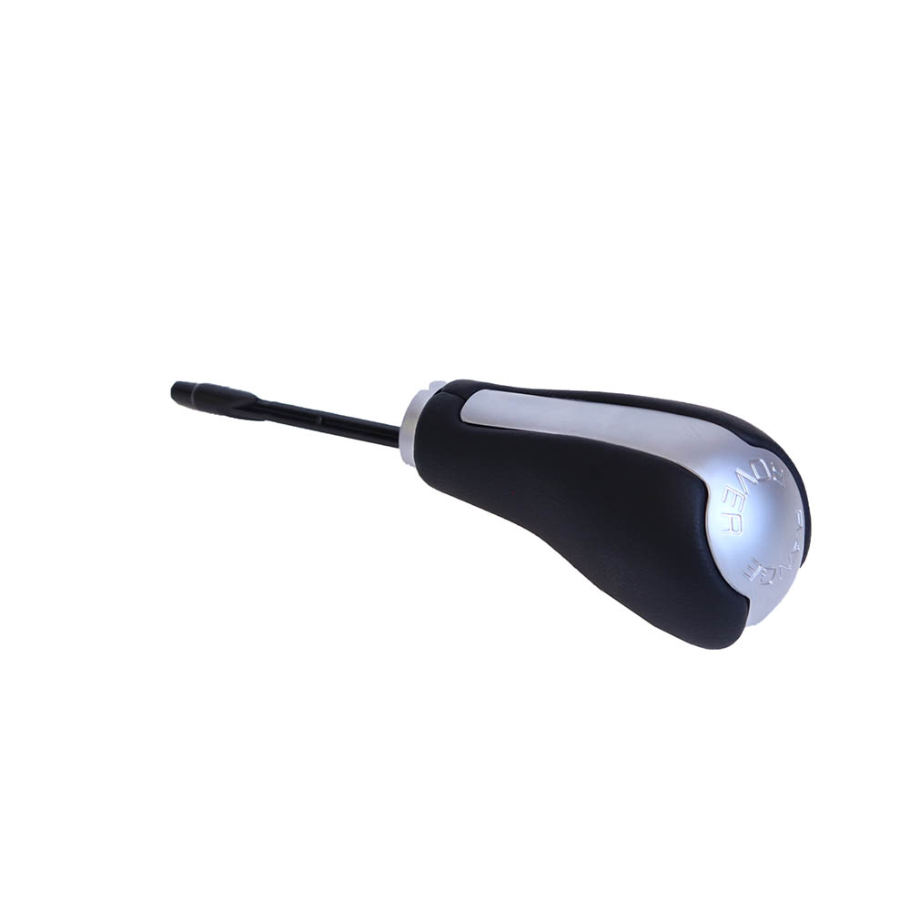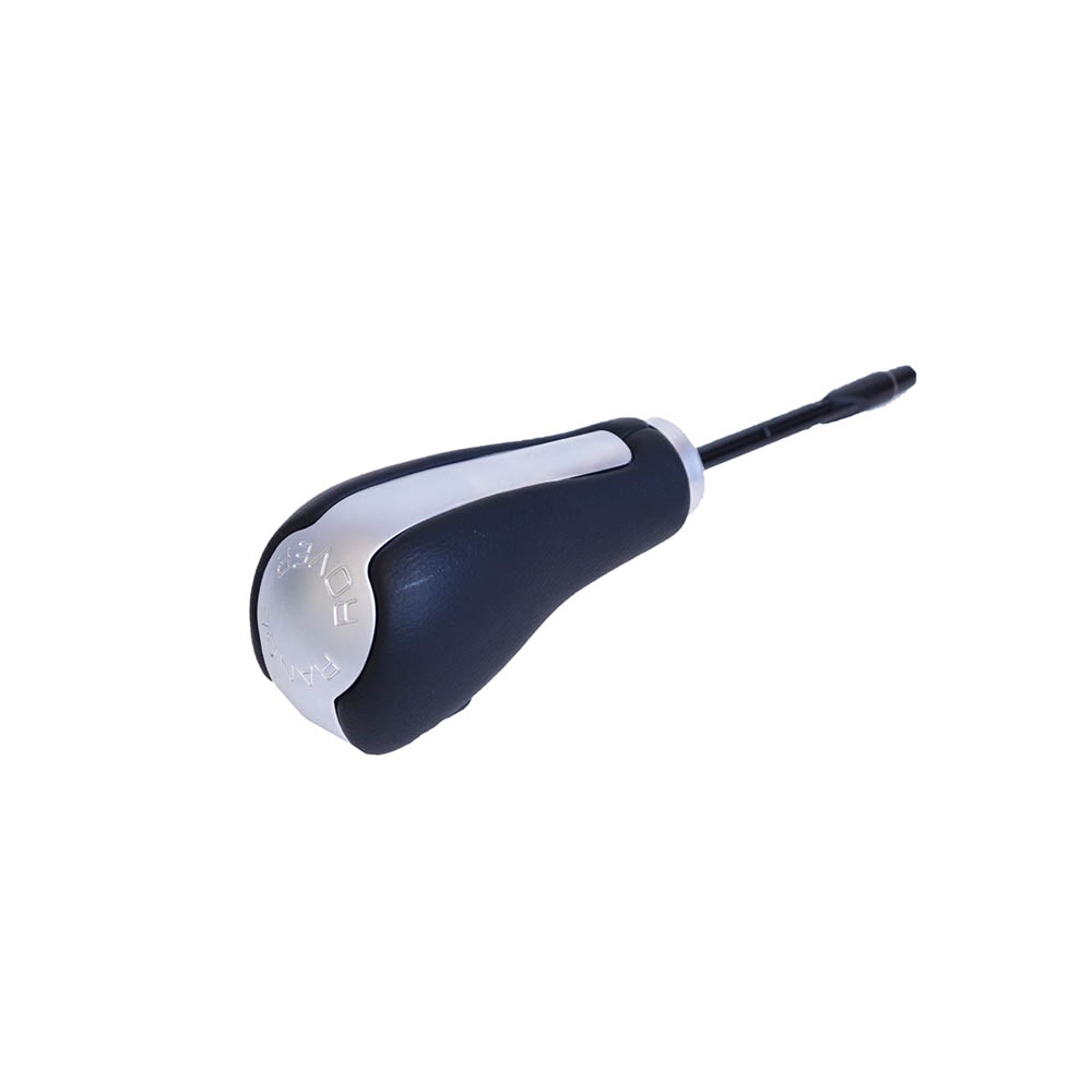 A váltógomb automata, fekete bőrözéssel és ezüst színű kiegészítőkkel