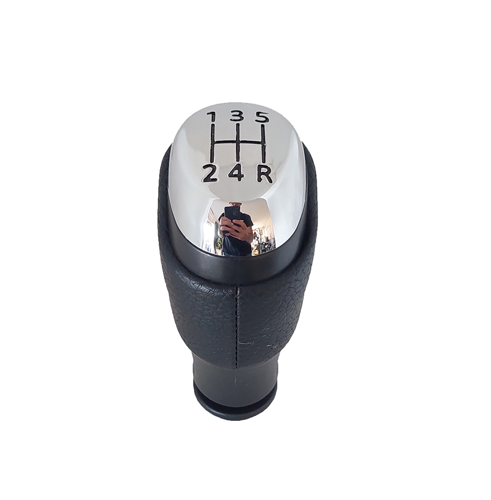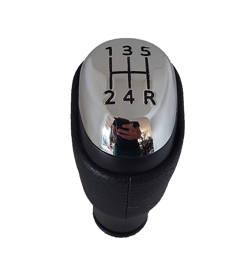 A váltógomb számlapja  króm színű az oldala a gyári váltógombhoz hasonlóan bőrözött.