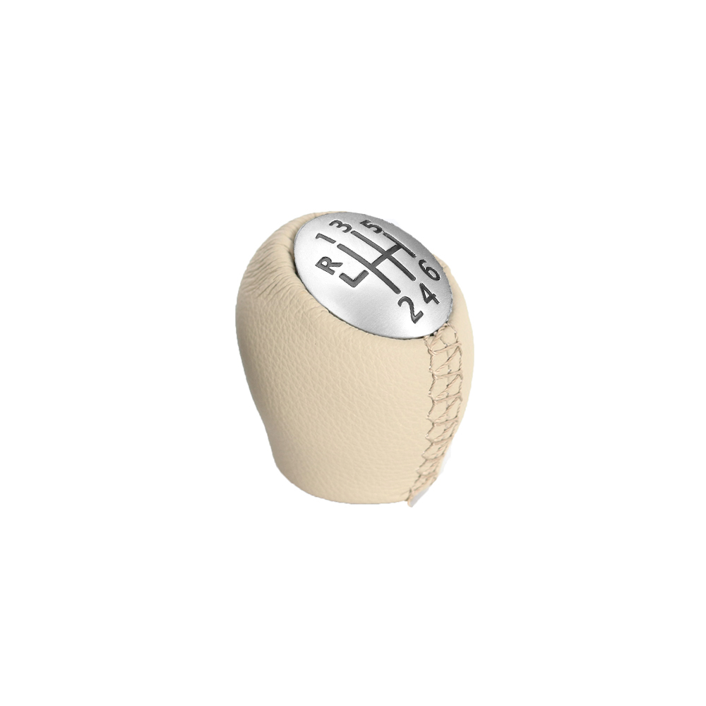 A váltógomb számlapja  ezüst színű az oldala a gyári váltógombhoz hasonlóan bőrözött, beige színű.