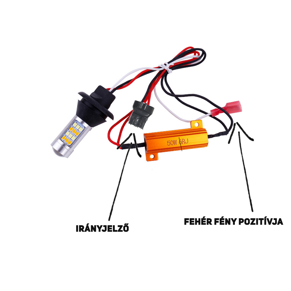 Az egyik legújabb izzó típus, amely egyszerre használható menetfény ként és irányjelző izzó ként is. Hideg fehér és narancssárga led chippekkel került kialakításra, illetve egy canbus ellenállás is megtalálható rajta.