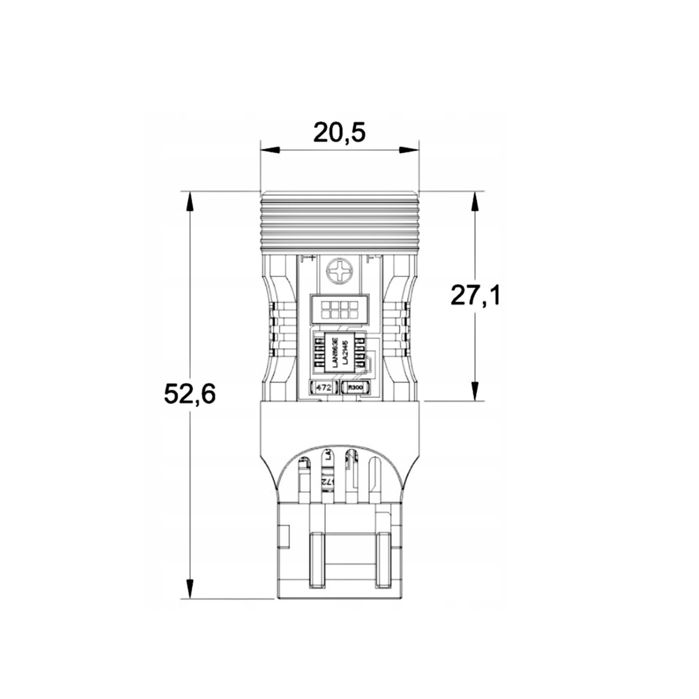 A mérete valamivel nagyobb mint a hagyományos W21W izzóké. Ez általában nem jelent problémát, de érdemes ellenőrizni megrendelés elött.
