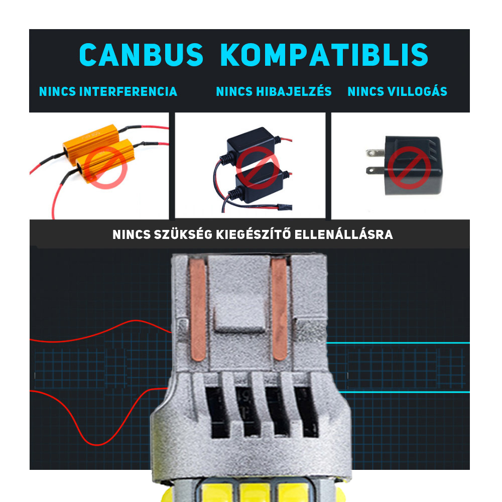 Az izzó nagy teljesítményű ledchippekkel van szerelve, így fényereje igazán erőteljes 2100 lumen! A CANBUS izzóhoz nem szükséges semmilyen plusz átalakítás, mivel a beépített elektronika vezérli. Az izzó csere után a normál tempóban fog villogni az irányjelző és nem jelez hibakódot sem.