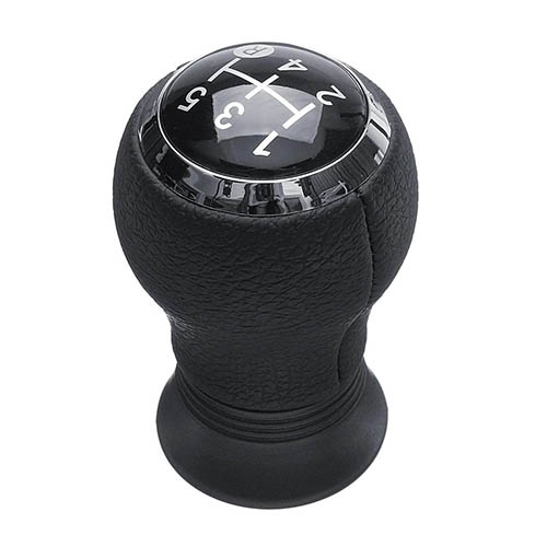 A váltógomb számlapja fekete, körbe króm karikával. A váltógomb teste bőrözött.
