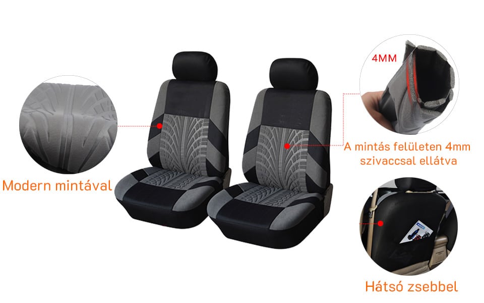 Az egyik legjobb univerzális üléshuzat szett ami megtalálható jelenleg a kínálatban. Sportos autógumira emlékeztető mintával van ellátva a hátlap és az ülőlap része.