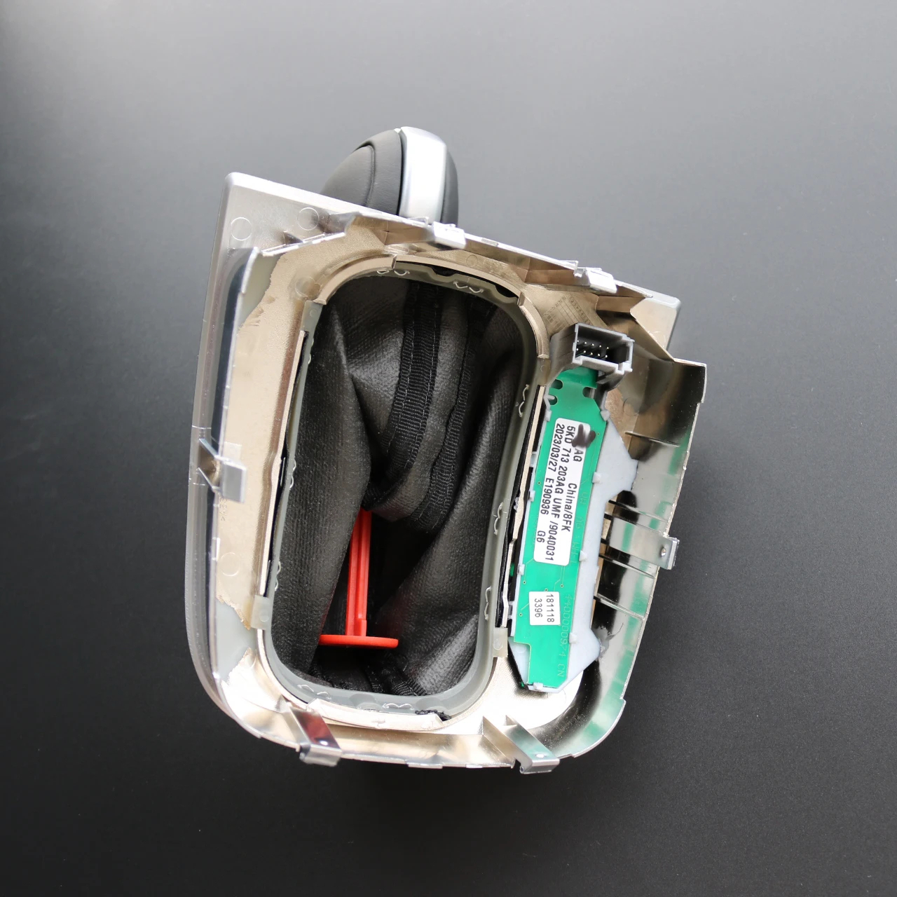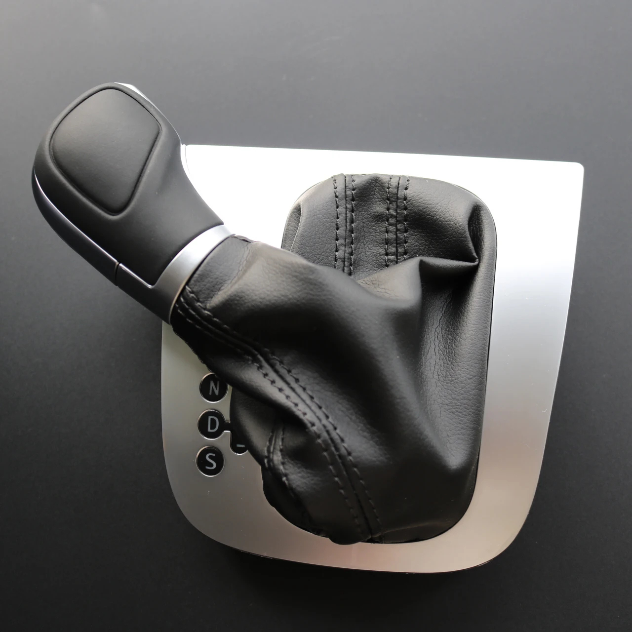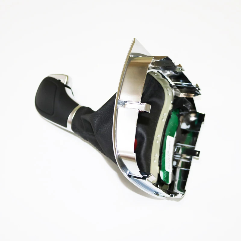 A váltószoknya fekete színű fekete varrással. Kompletten a beépítőkerettel össze van szerelve, így nagyon egyszerű a cseréje. A szoknya és a váltógomb anyaga bőr. A váltógomb automata, kompletten a kapcsológombbal együtt. A betétek matt ezüst színűek, a váltógomb tetején DSG felirattal.A képeken látható piros fül csak a beszerelésig szükséges rá, ez rögzíti a kapcsológombot. Ezután le kell pattintani.