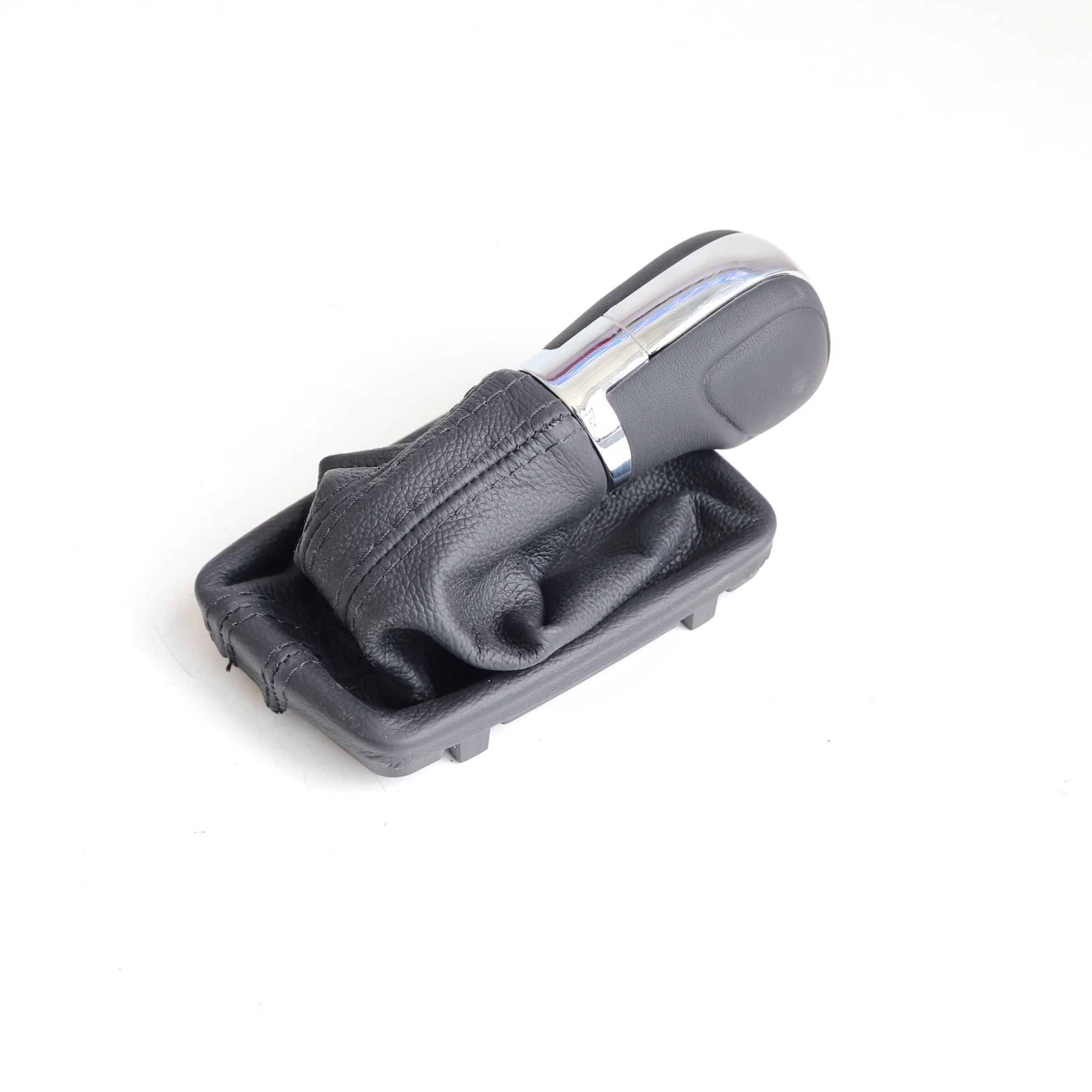A váltószoknya fekete színű fekete varrással. Kompletten a beépítőkerettel össze van szerelve, így nagyon egyszerű a cseréje. A szoknya és a váltógomb anyaga bőr. A váltógomb automata, kompletten a kapcsológombbal együtt. A betétek króm színűek, a váltógomb tetején DSG felirattal.A képeken látható piros fül csak a beszerelésig szükséges rá, ez rögzíti a kapcsológombot. Ezután le kell pattintani.